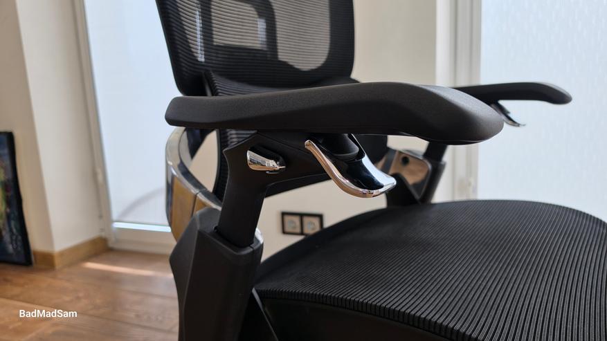 Регулировка высоты вынесена на правый подлокотник. Первое время рука по привычке уходит вниз, но быстро перестраиваешься. По факту это удобнее, чем классический вариант. Сидишь, меняешь высоту, не наклоняясь и не нащупывая рычаг под сиденьем.