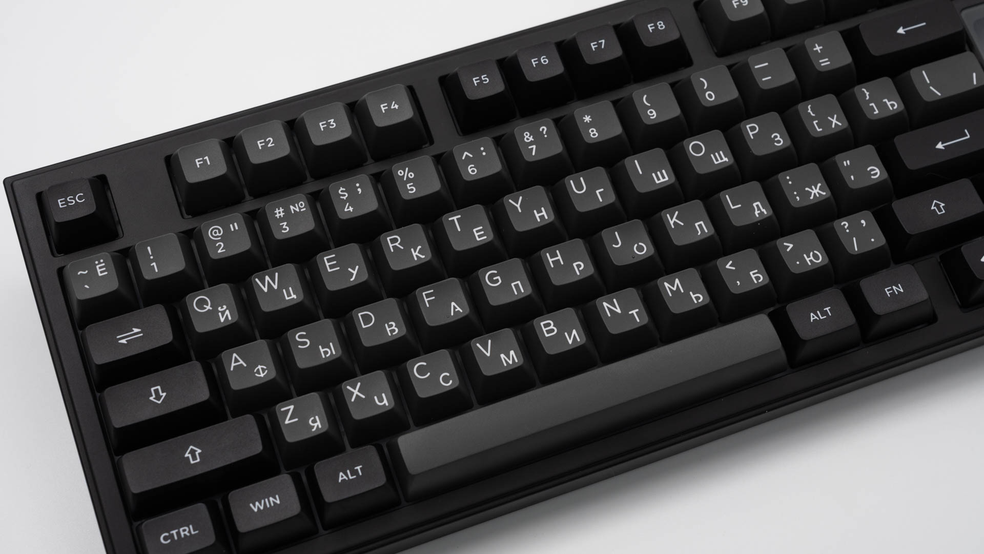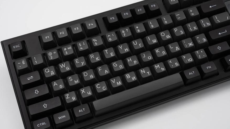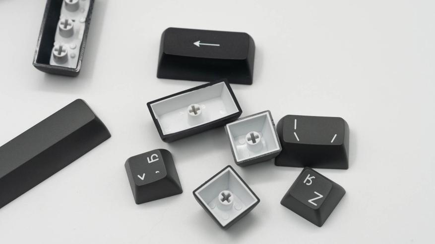 Клавиши изготовлены из износостойкого PBT-пластика по технологии двойного литья и имеют низкопрофильный дизайн ASA. Нанесение символов методом двойной сублимации гарантирует их устойчивость к истиранию, но делает их непрозрачными для светового потока.