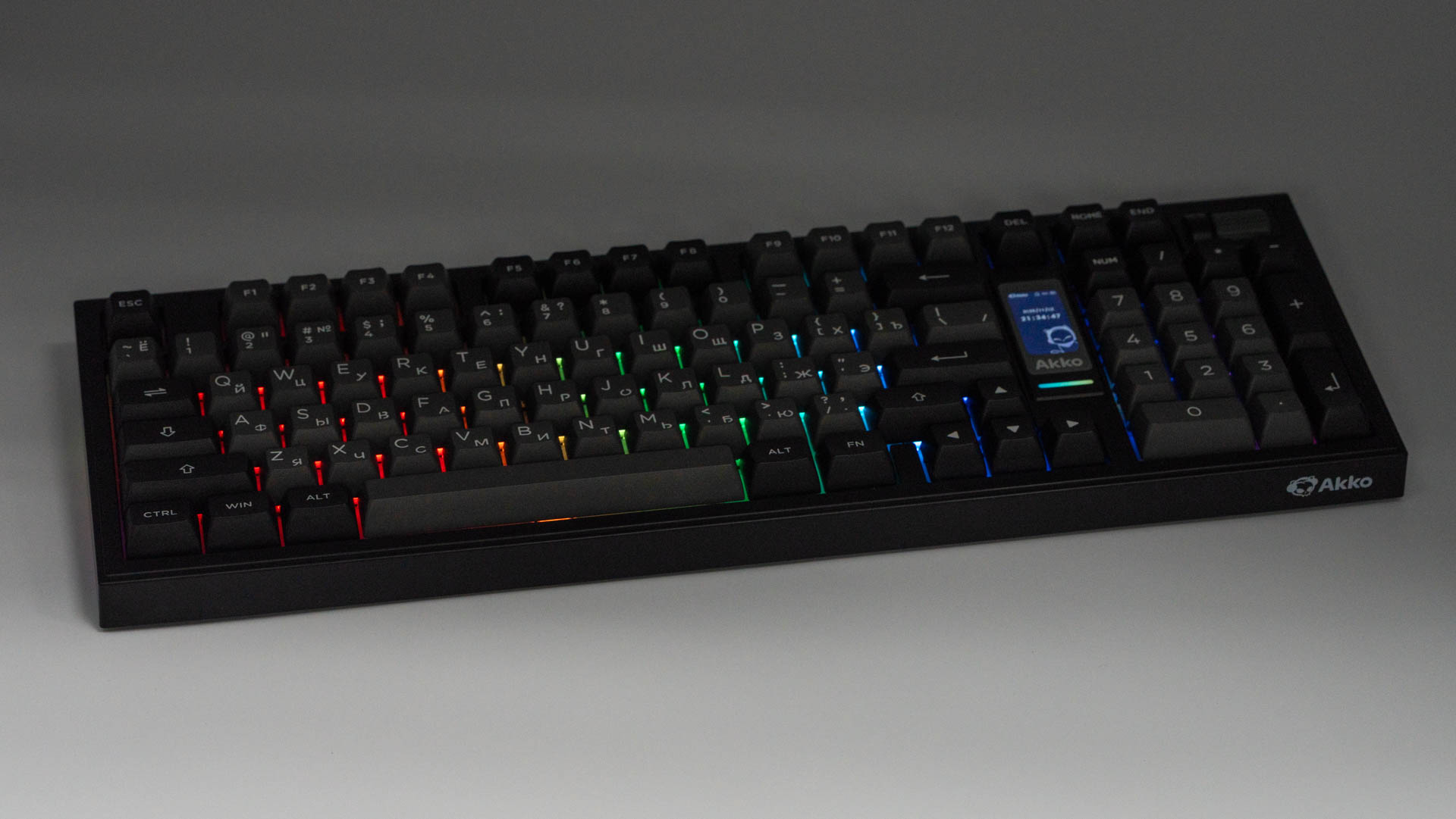 Клавиатуры со встроенными дисплеями перестают быть экзотикой, уверенно отвоевывая себе место на рынке. Цена на них практически сравнялась с традиционными моделями, делая передовую технологию доступной. Возьмем для примера модель 5098B от Akko, где производитель постарался гармонично интегрировать дисплей в клавиатуру и при этом не забыл про функциональность, но обо всем по порядку.