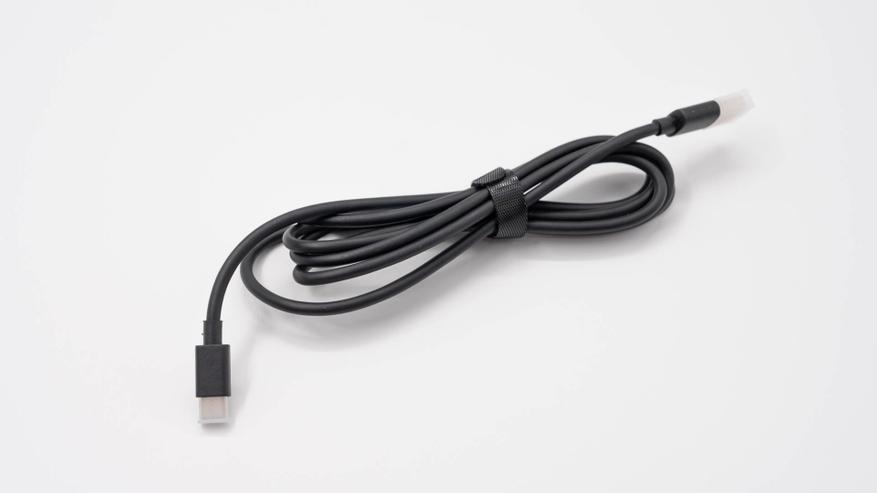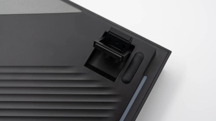 На тыльной стороне, на металлической панели, расположены элементы коммутации: углубление для беспроводного адаптера, порт USB-C для подключения кабеля питания и универсальный переключатель совместимости между операционными системами Windows и Mac OS.