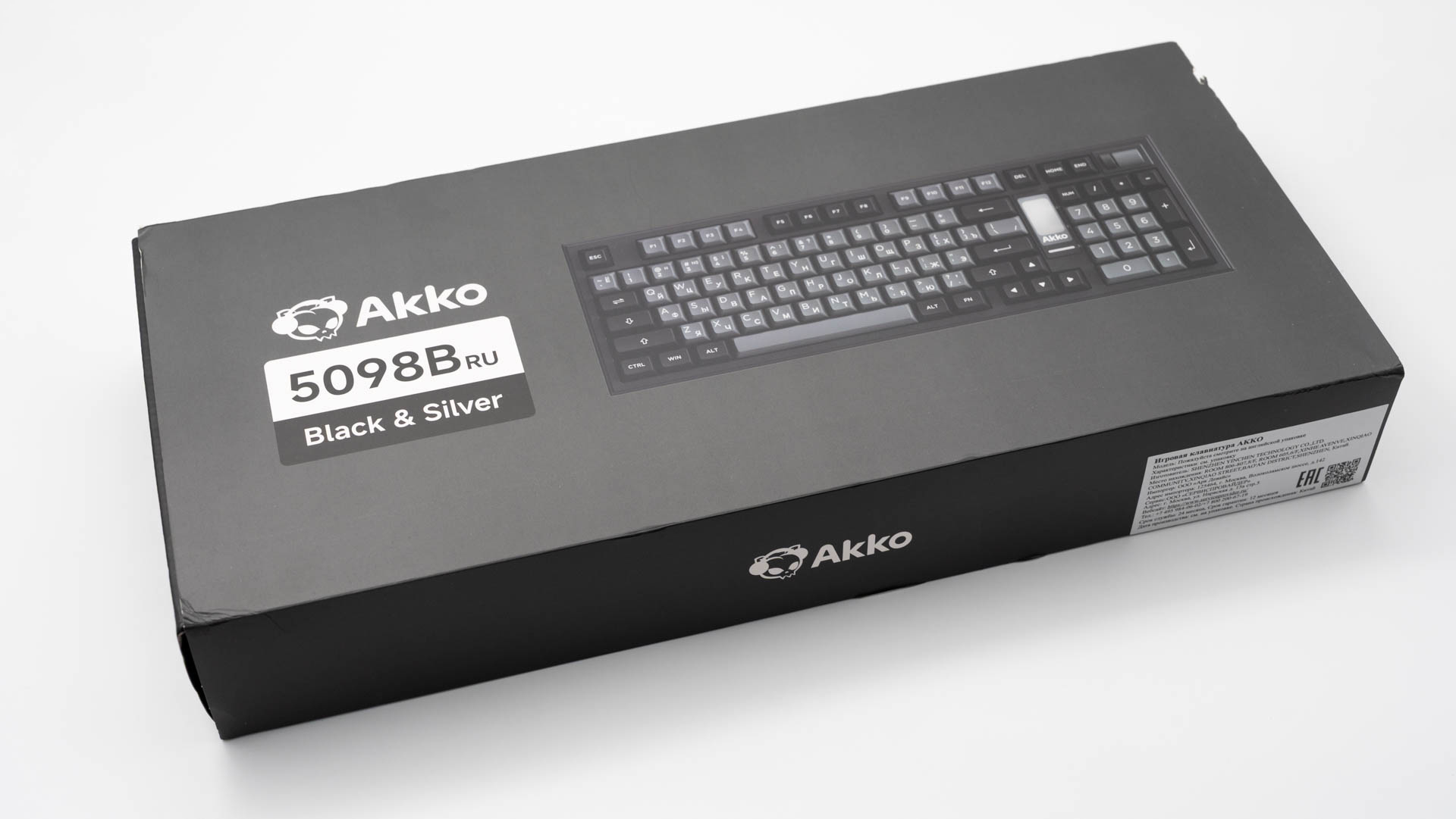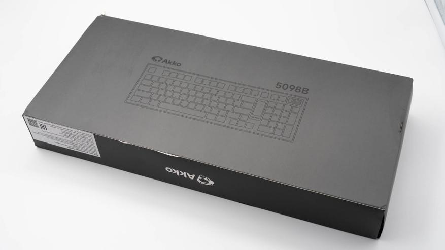Модель 5098B поставляется в картонной коробке, поверх которой надета обложка с изображением клавиатуры и перечислением ключевых характеристик.