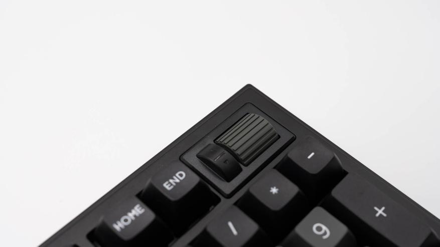 В правом верхнем углу клавиатуры расположена вертикальная ручка, которая является органичным сочетанием эстетики и утилитарности.