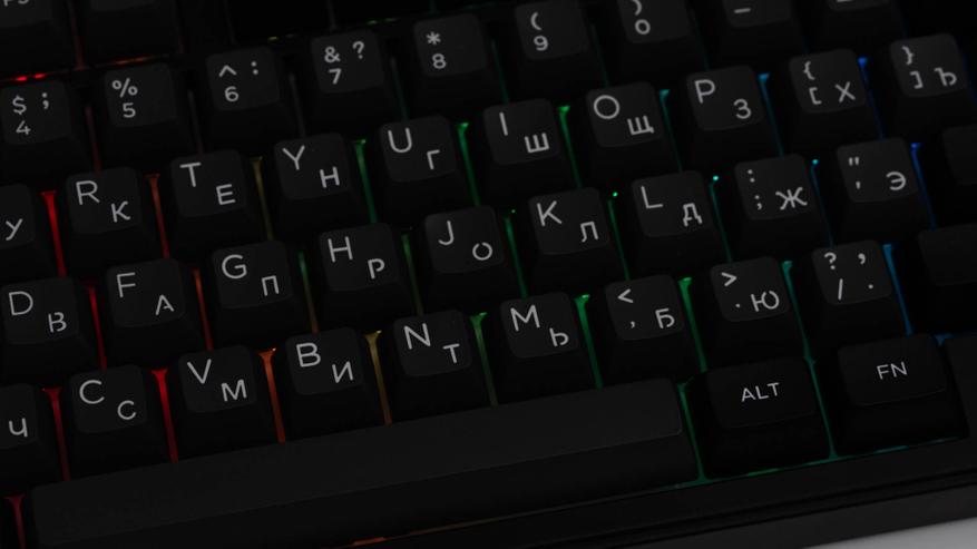 С наступлением сумерек, когда свет дня угасает, распознавание символов без дополнительного источника света становится сложной задачей, особенно если метод слепой печати вам не знаком. В то же время встроенная RGB-подсветка демонстрирует насыщенную цветопередачу и широкий выбор динамических режимов, выполняя скорее декоративную роль.