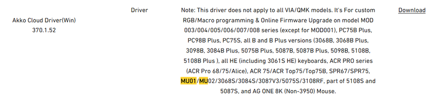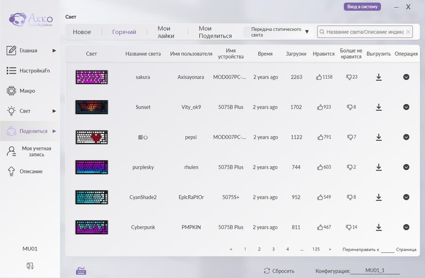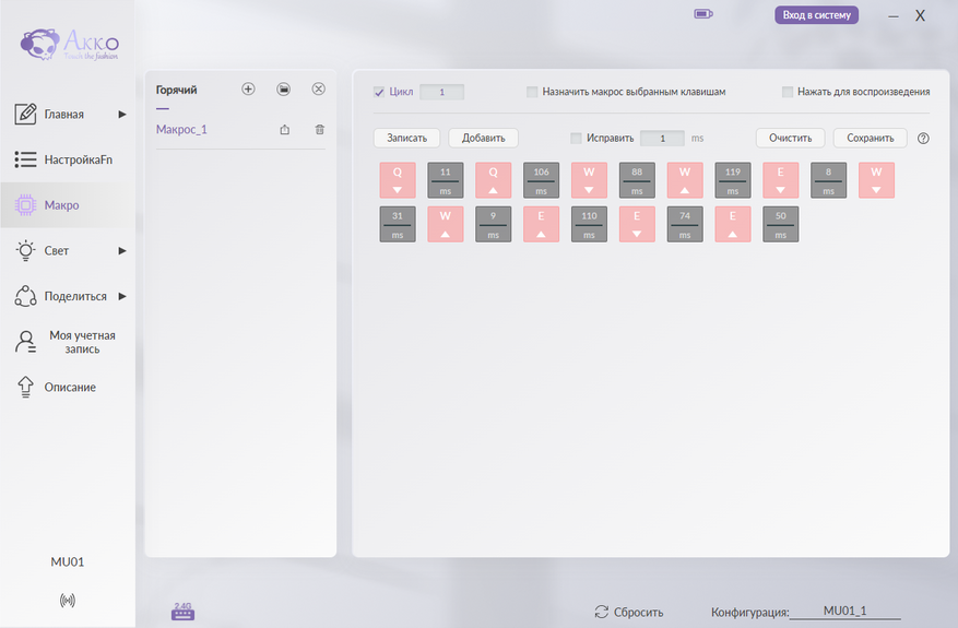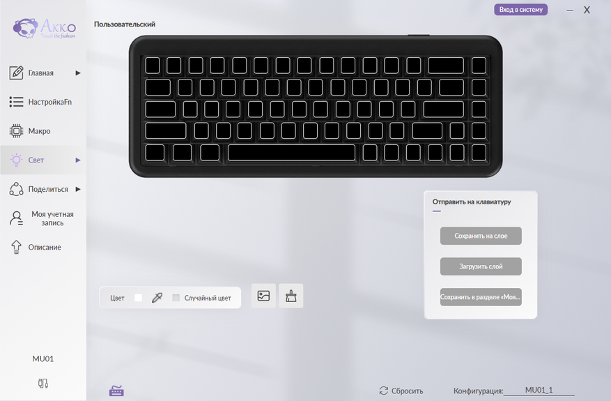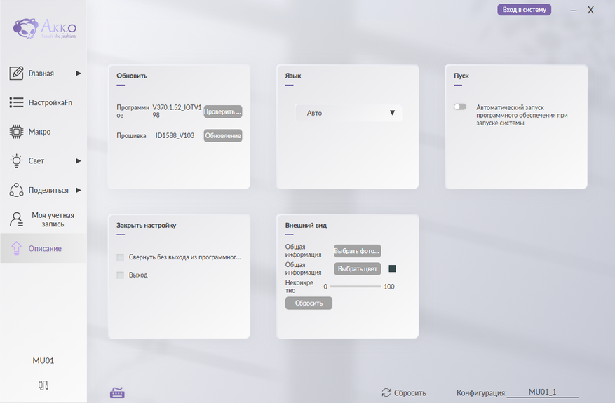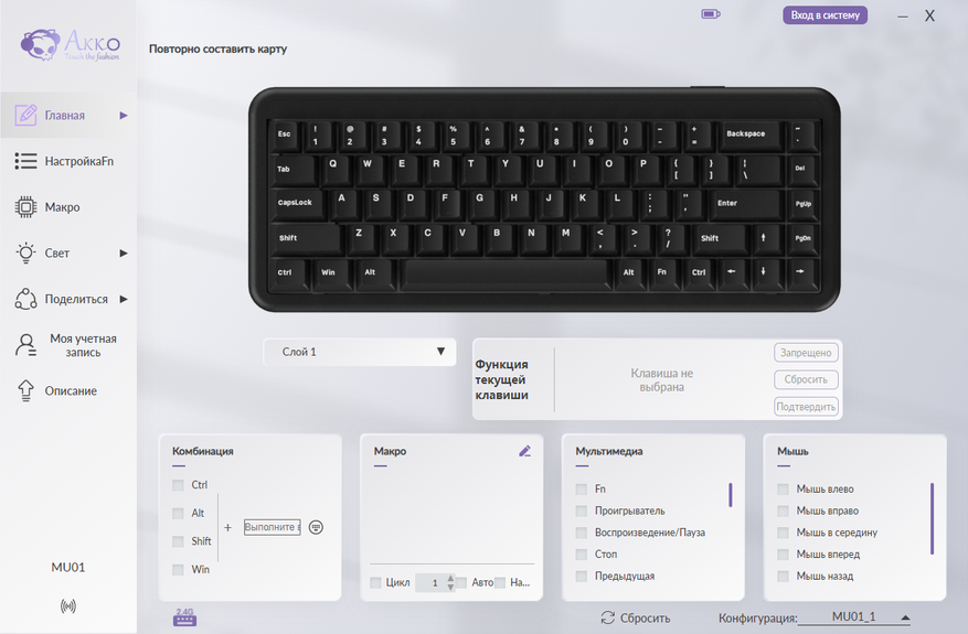 Механическая клавиатура Akko MU01 Mountain Seclusion поддерживается фирменным программным обеспечением Akko Cloud Driver, которая доступна на официальном портале. Также есть web-версия для настройки устройства.
