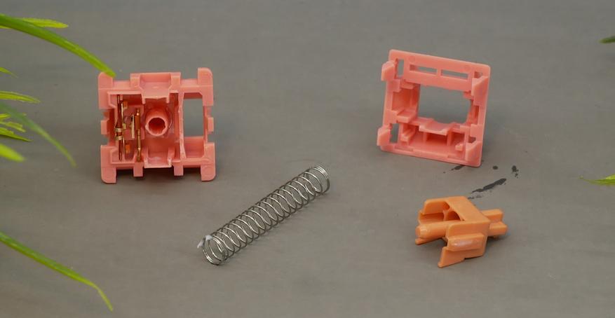 Корпус Akko Rosewood состоит из двух половинок, металлического контакта и пружинки. Имеется немного смазки.
