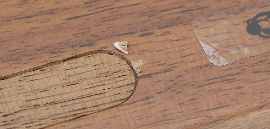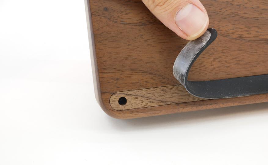 В качестве эксперимента и подтверждения, что корпус клавиатуры выполнен из дерева, я скальпелем срезал часть основания. Материал соответствует описанию, поэтому в модели Akko MU01 Mountain Seclusion используется ореховое дерево (или его аналоги), а не имитация или крашенный пластик.