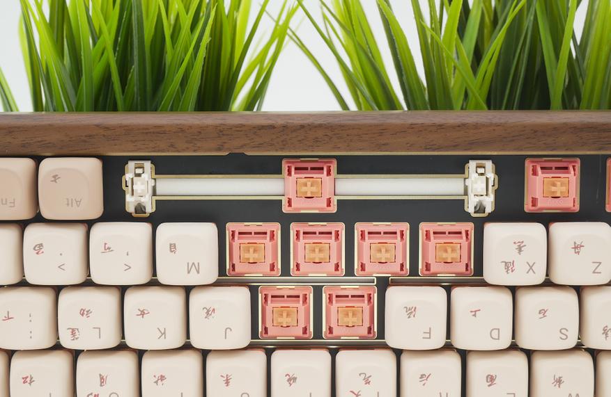 Переключатели. В данной модификации возможны несколько вариантов свитчей, но в моей версии стоят Akko Rosewood, и они показали себя прекрасно. Это универсальное решение для набора текста и игр с мягким нажатием и срабатыванием, которое подойдет большинству пользователей.