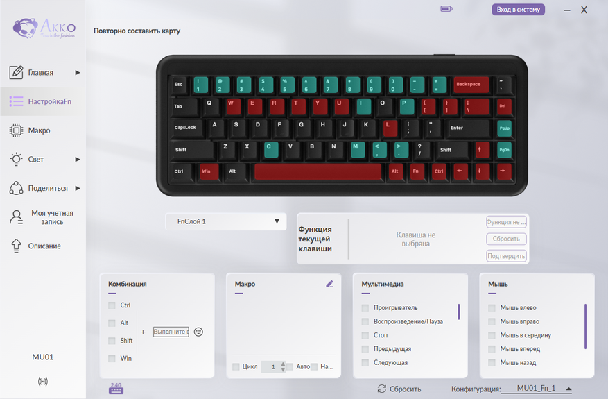 Возможности программы Akko Cloud Driver достаточно расширенны и позволяют настраивать горячие клавиши, комбинации, переназначать клавиши