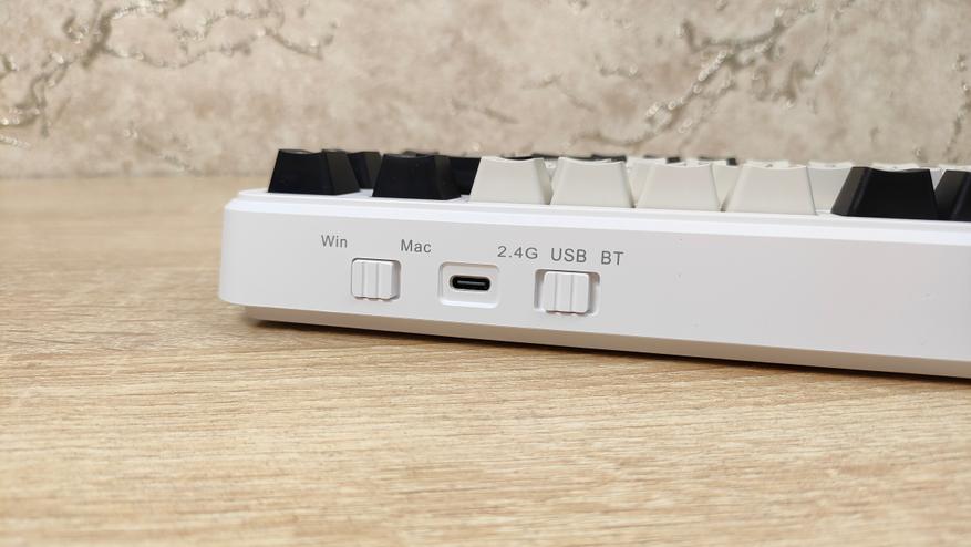 Подключение клавиатуры может осуществиться любым из трех способов: проводной способ, радиоканал с приемо-передатчиком и Bluetooth. С первыми двумя совсем все просто, подключаем и пользуемся. В случае синезуба, проходим простейшую и привычную процедуру сопряжения. По радиоканалу работает не только с ПК или ноутбуками, но и с телевизорами и ТВ-приставками, а Bluetooth со всеми, кто поддерживает устройства ввода с таким способом подключения, например смартфоны. Как всегда, доступно 3 профиля для разных устройств, для горячей смены. Качество работы «по воздуху» сильно зависит от внешнего окружения и сильно разнится от пользователя к пользователю.