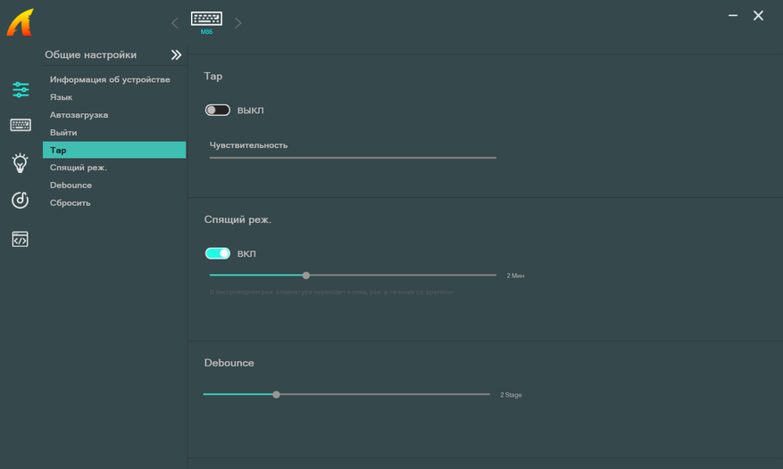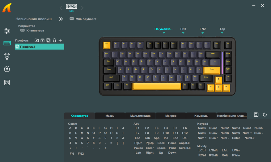 Программное обеспечение типовое. Оно позволяет настраивать: слои клавиш, макросы, подсветку. Состояние заряда при работе по беспроводу не показывает.