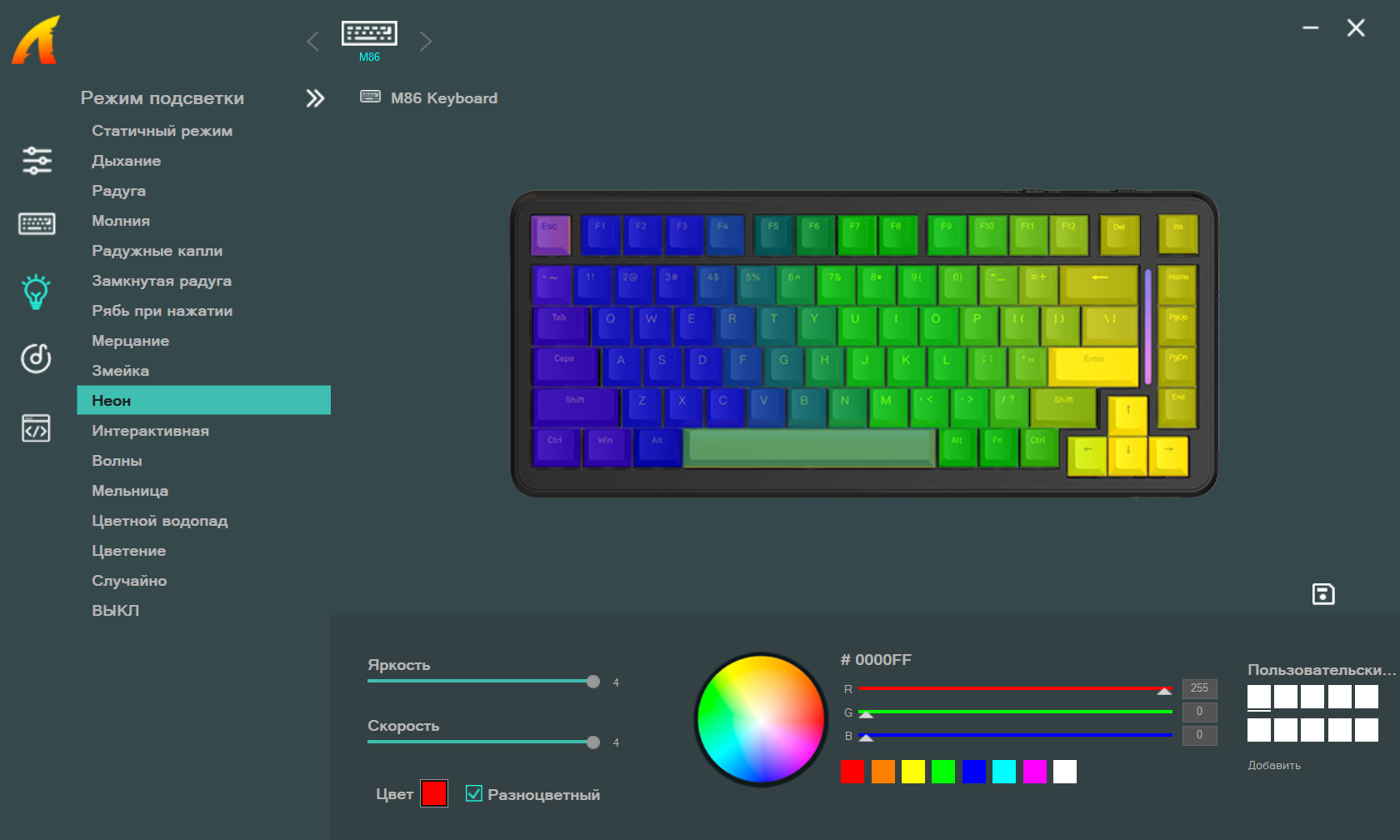 | Подсветка | RGB, отключаемая |