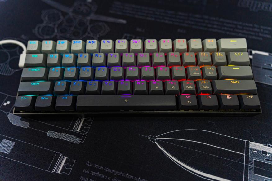 Подсветка всех символов реализована через полупрозрачные колпачки — это решение оценят те, кто полагается на визуальное восприятие клавиш. Несмотря на простоту, подсветка выполняет свою основную функцию, не претендуя на премиальную избыточность.