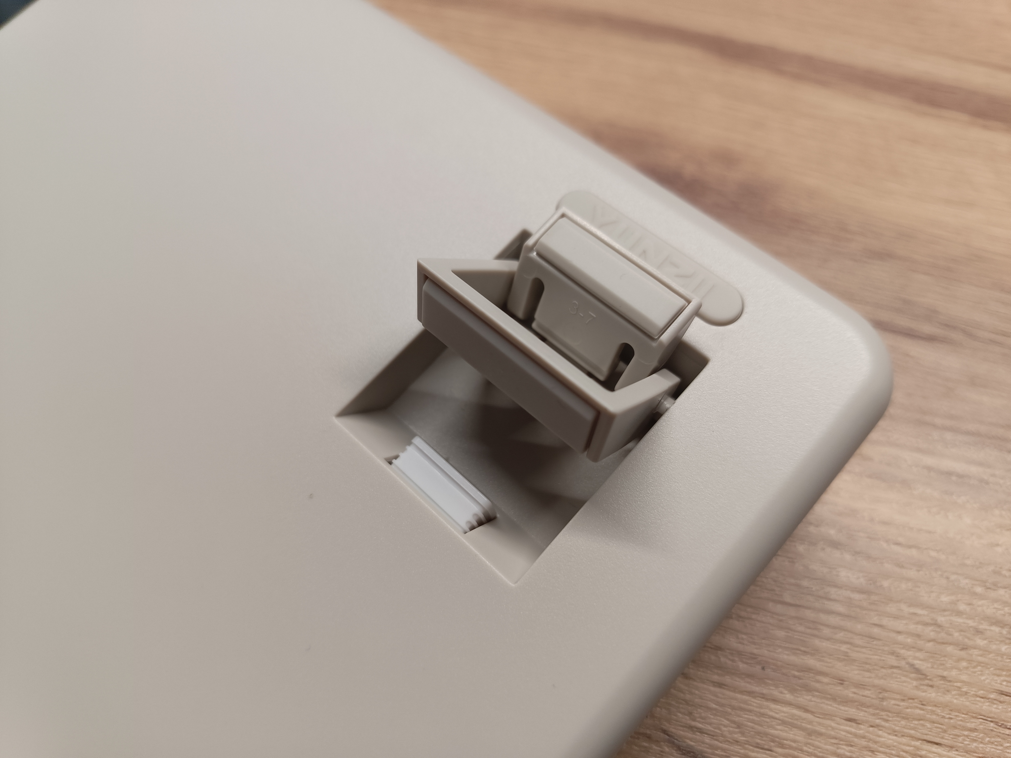 Донгл для беспроводного подключения спрятан под одной из откидных ножек. Ножки двойные, и на каждой предусмотрена антискользящая накладка для устойчивости клавиатуры на любой поверхности.