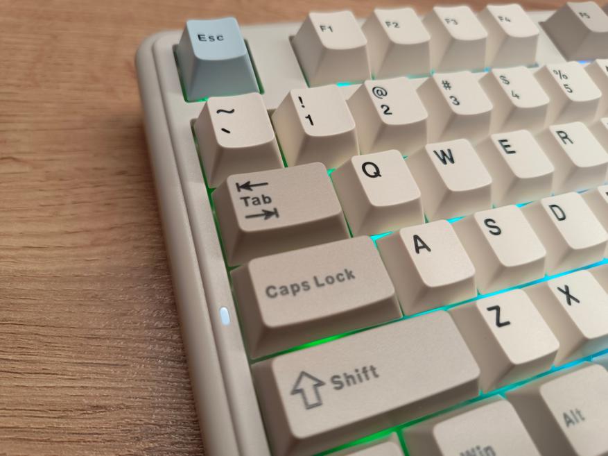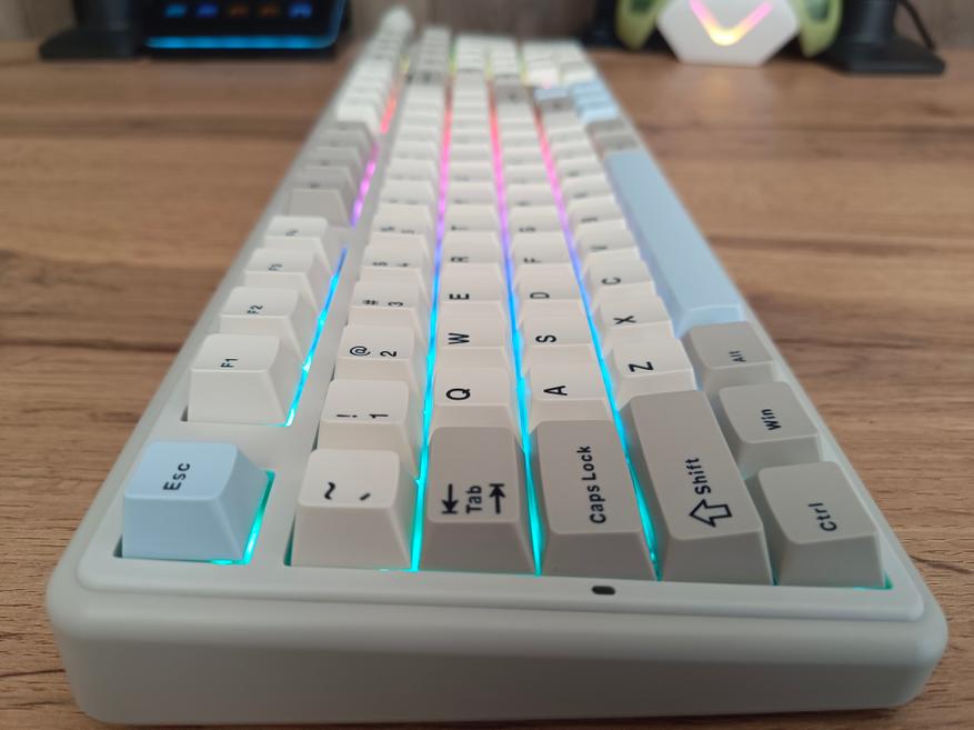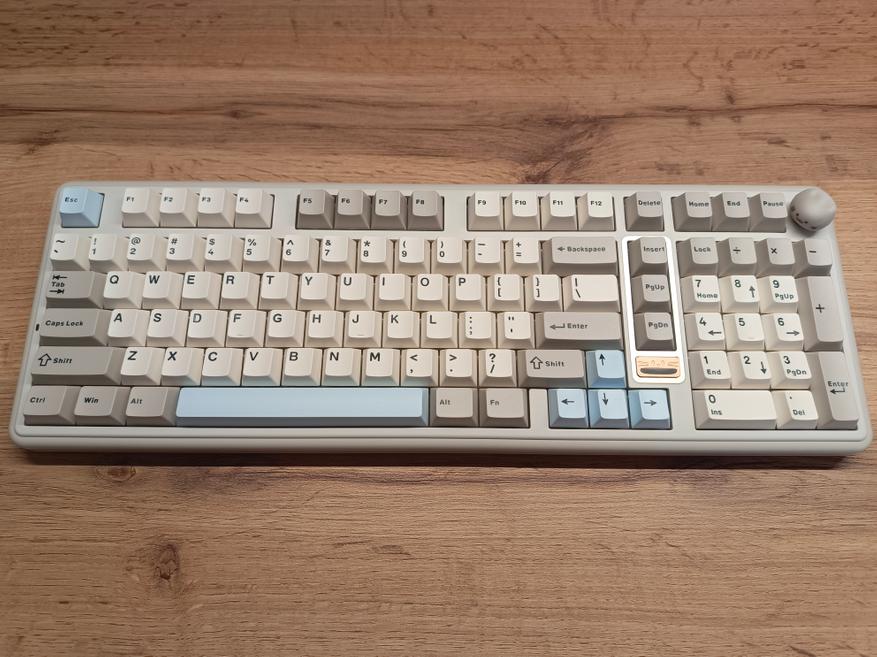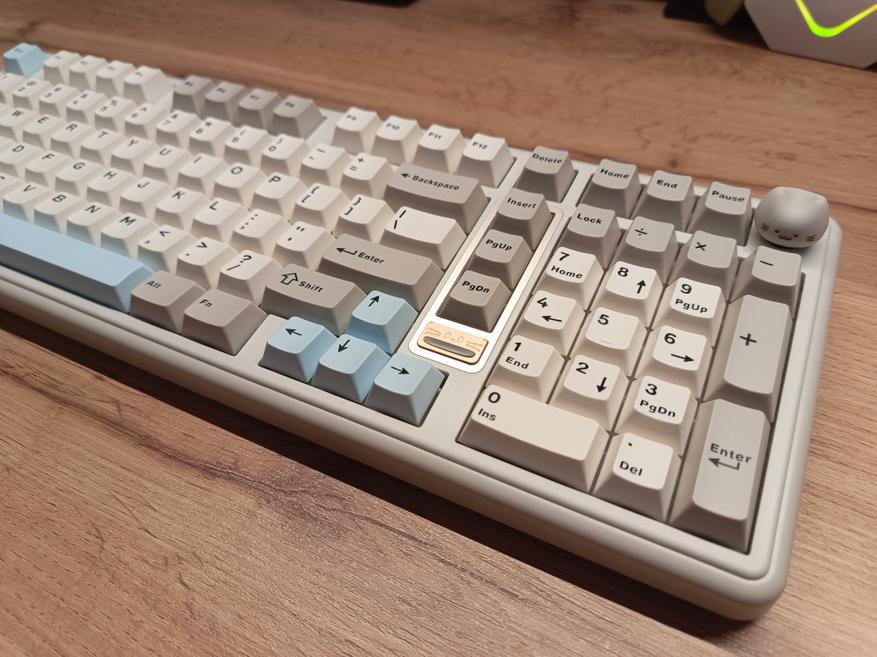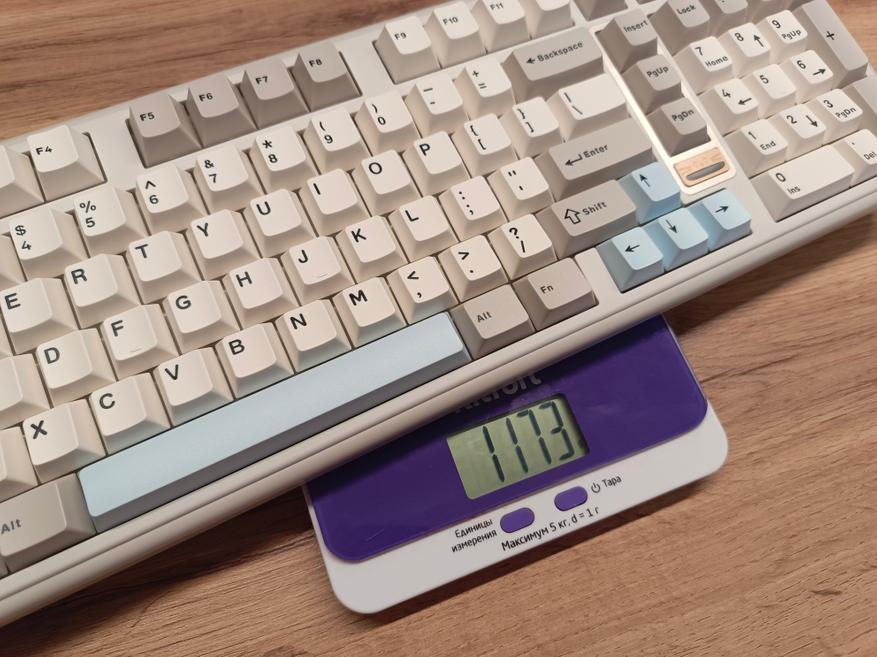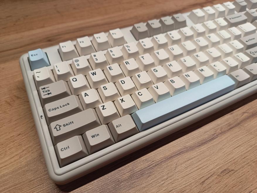 Клавиатура полноразмерная, с отдельным цифровым блоком и двумя клавишами Enter. Внешне она выглядит довольно интересно и отчасти визуально возвращает в атмосферу 90-х годов. Единственный нюанс — клавиатура собрана по gasket-структуре. При этом модель получила три типа подключения, а также, разумеется, поддержку гибкой настройки через VIA. В то время о таком могли лишь мечтать.