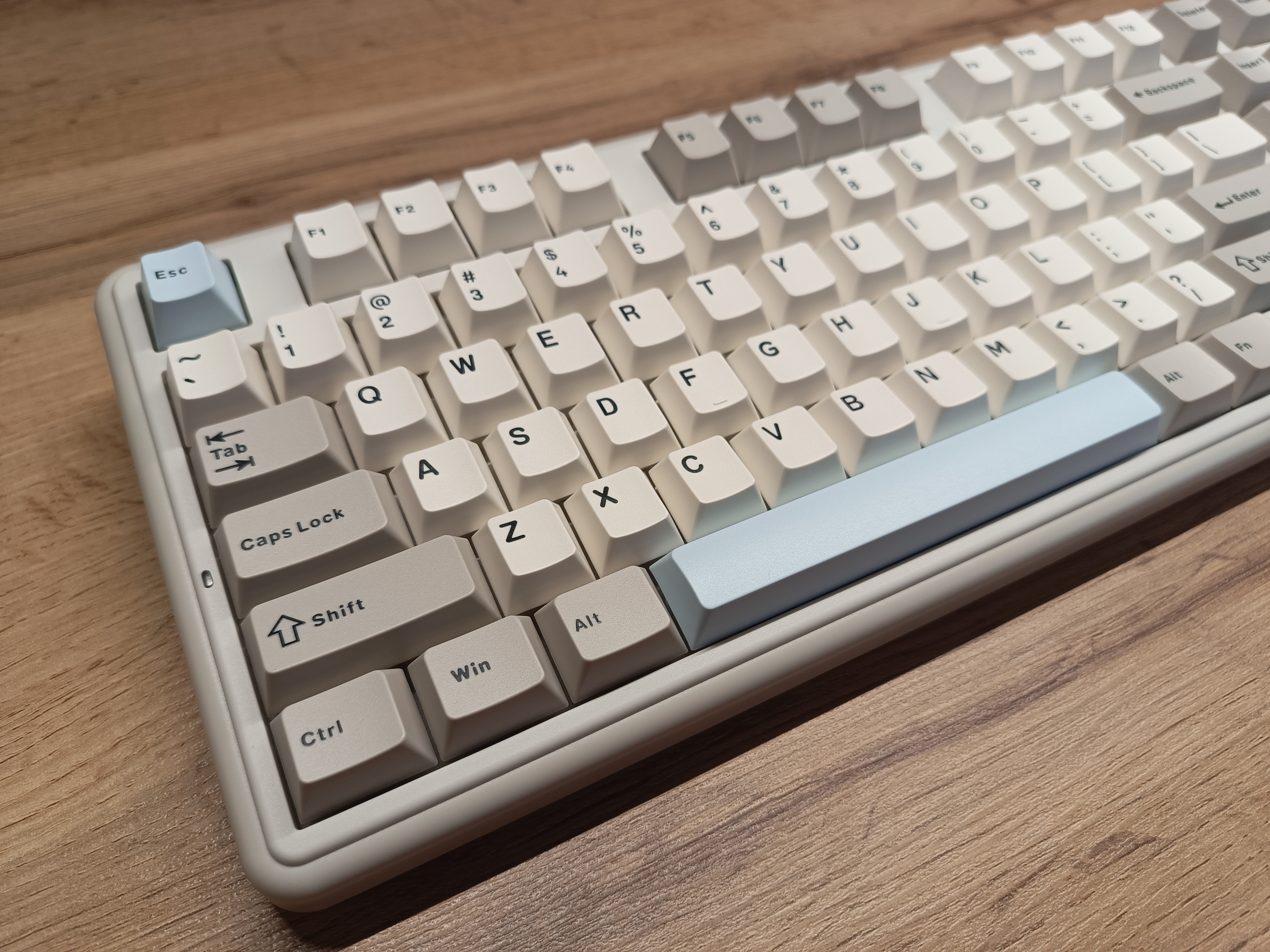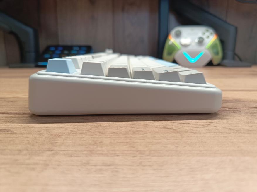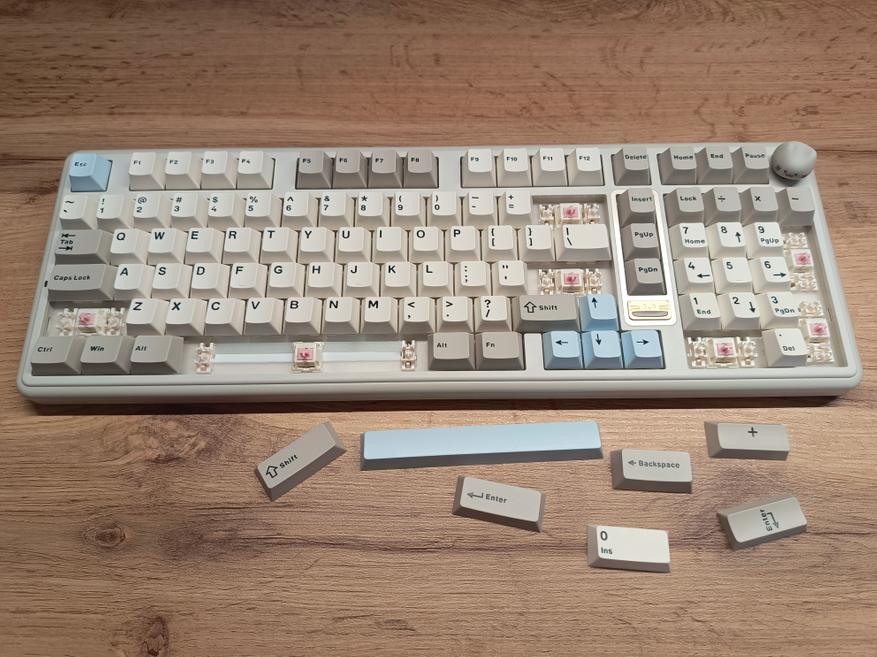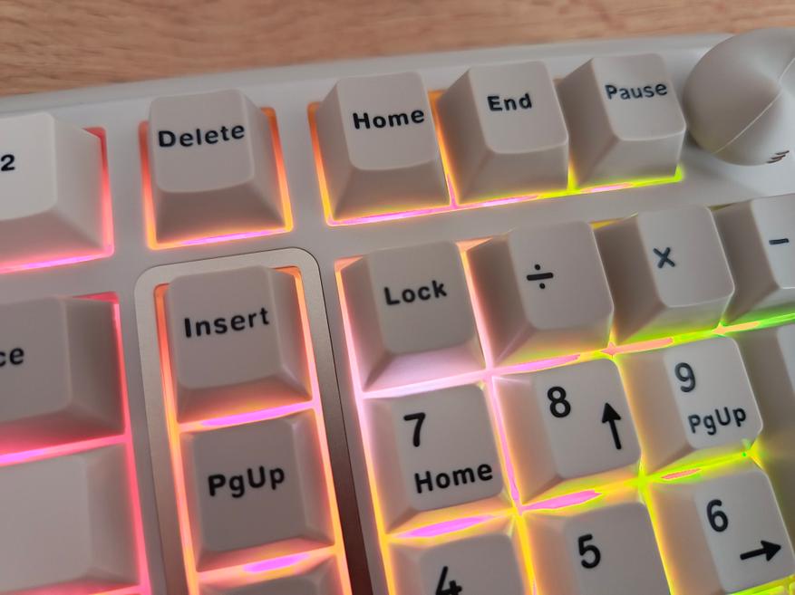 Клавиатура полноразмерная, с отдельным цифровым блоком и двумя клавишами Enter. Внешне она выглядит довольно интересно и отчасти визуально возвращает в атмосферу 90-х годов. Единственный нюанс — клавиатура собрана по gasket-структуре. При этом модель получила три типа подключения, а также, разумеется, поддержку гибкой настройки через VIA. В то время о таком могли лишь мечтать.