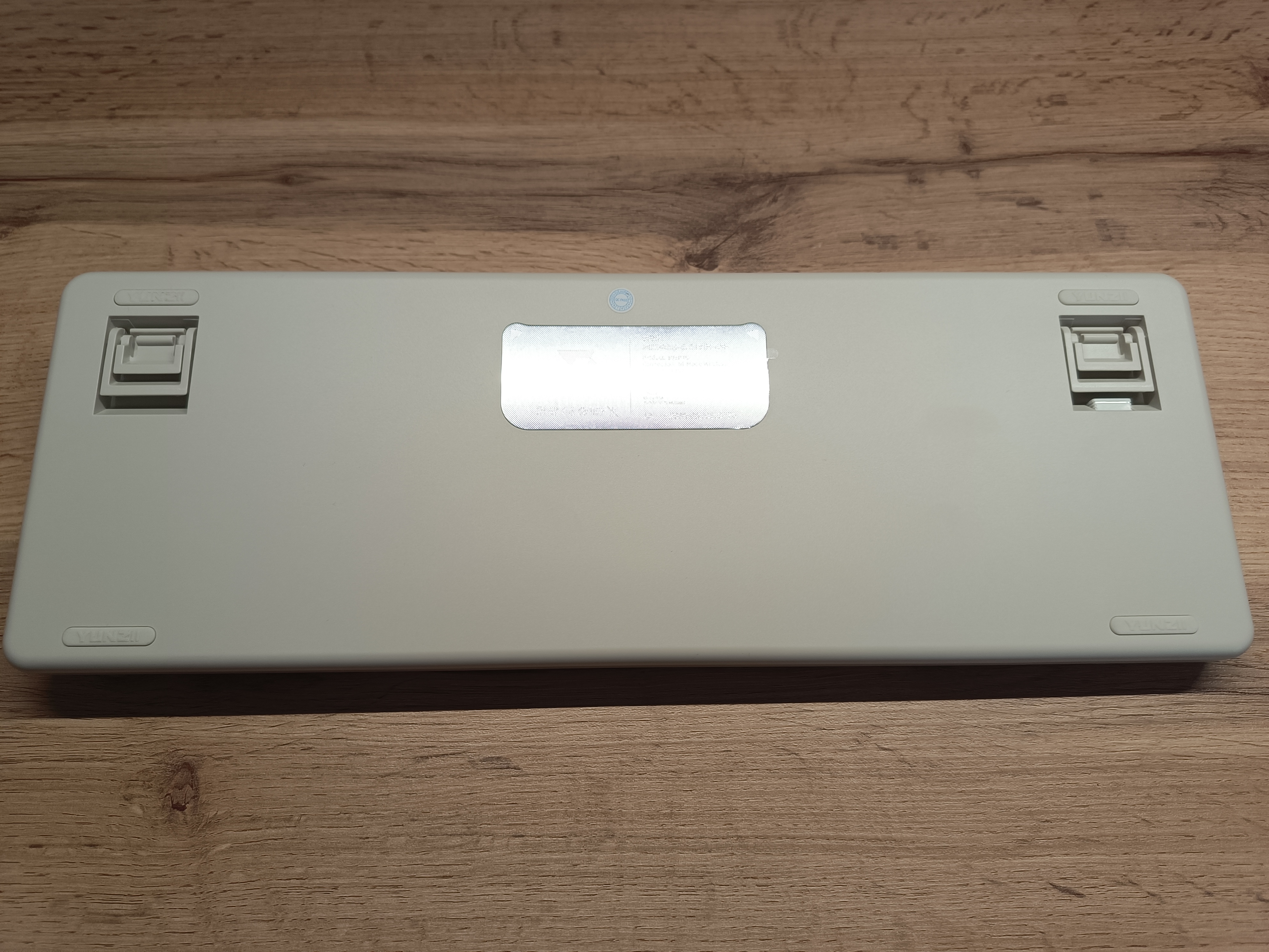 Несмотря на пластиковый корпус, клавиатура весит почти 1,2 килограмма, что для её размера вполне неплохо. Снизу установлена фирменная металлическая вставка с лазерной гравировкой, на которой указано название модели.