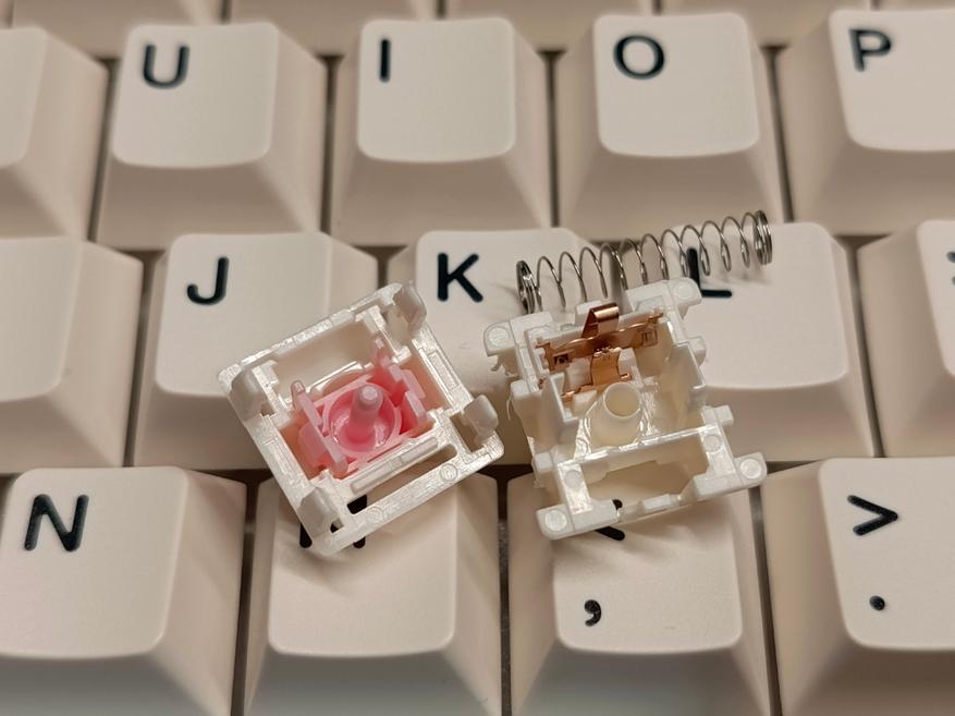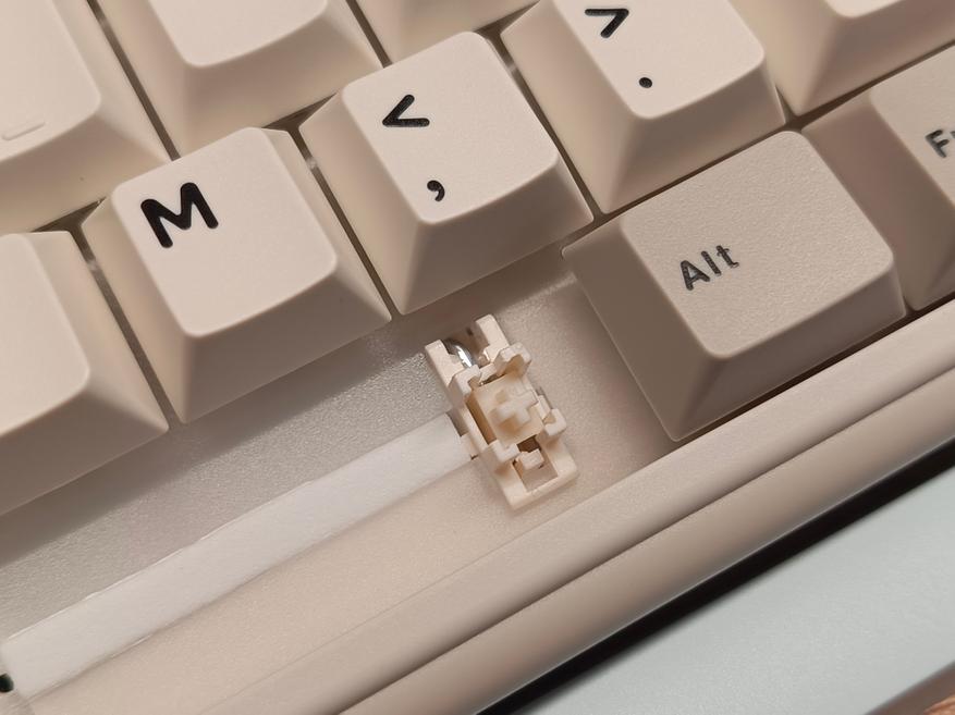 Свитчи Candy Linear Switch обладают глубоким и насыщенным звуком. При оформлении заказа есть возможность выбрать альтернативные свитчи Milk V2 Linear, которые отличаются более выраженным звуком. Внутри свитчи, если и смазаны, то весьма слабо — сложно точно определить, но, похоже, есть тонкий слой смазки.