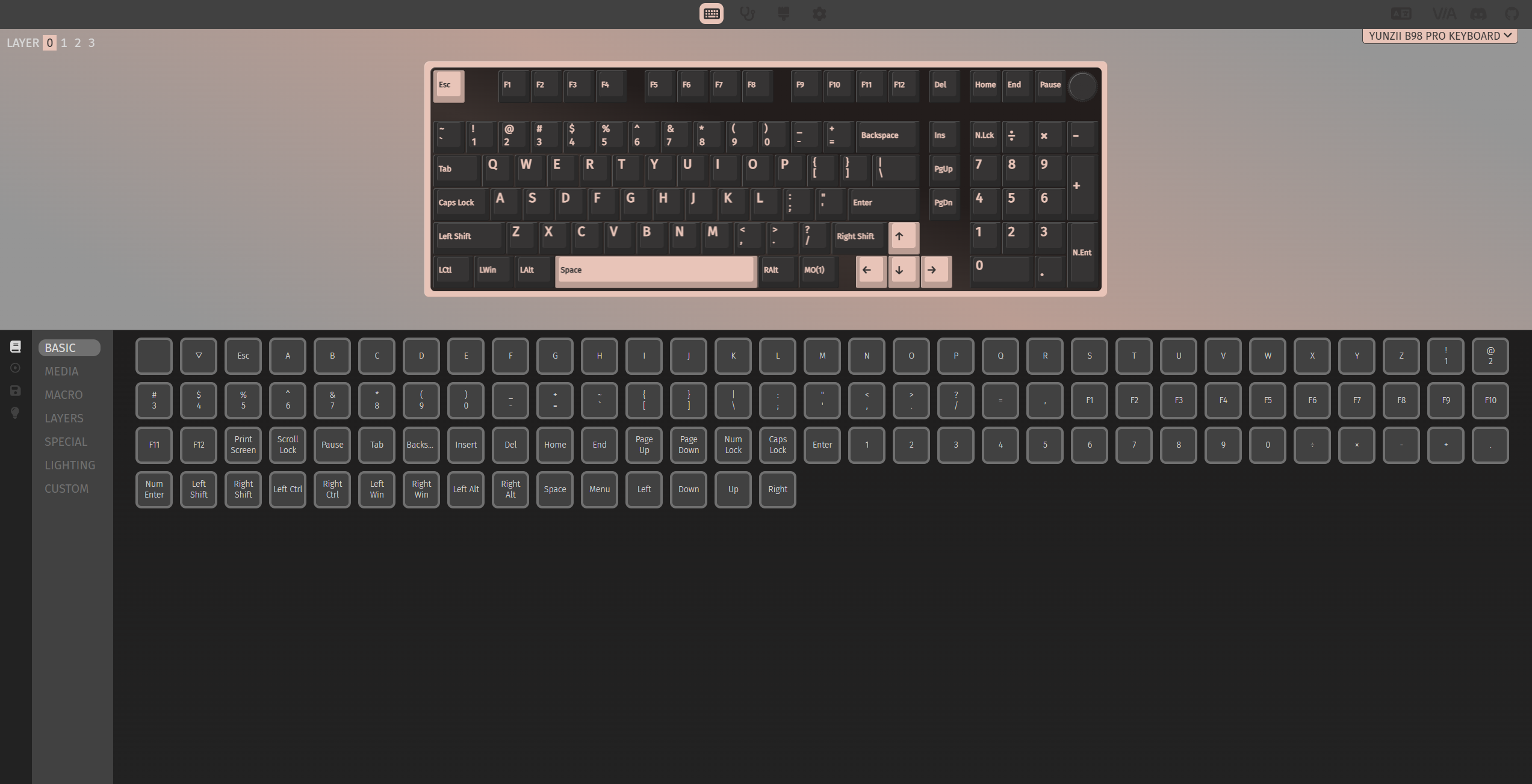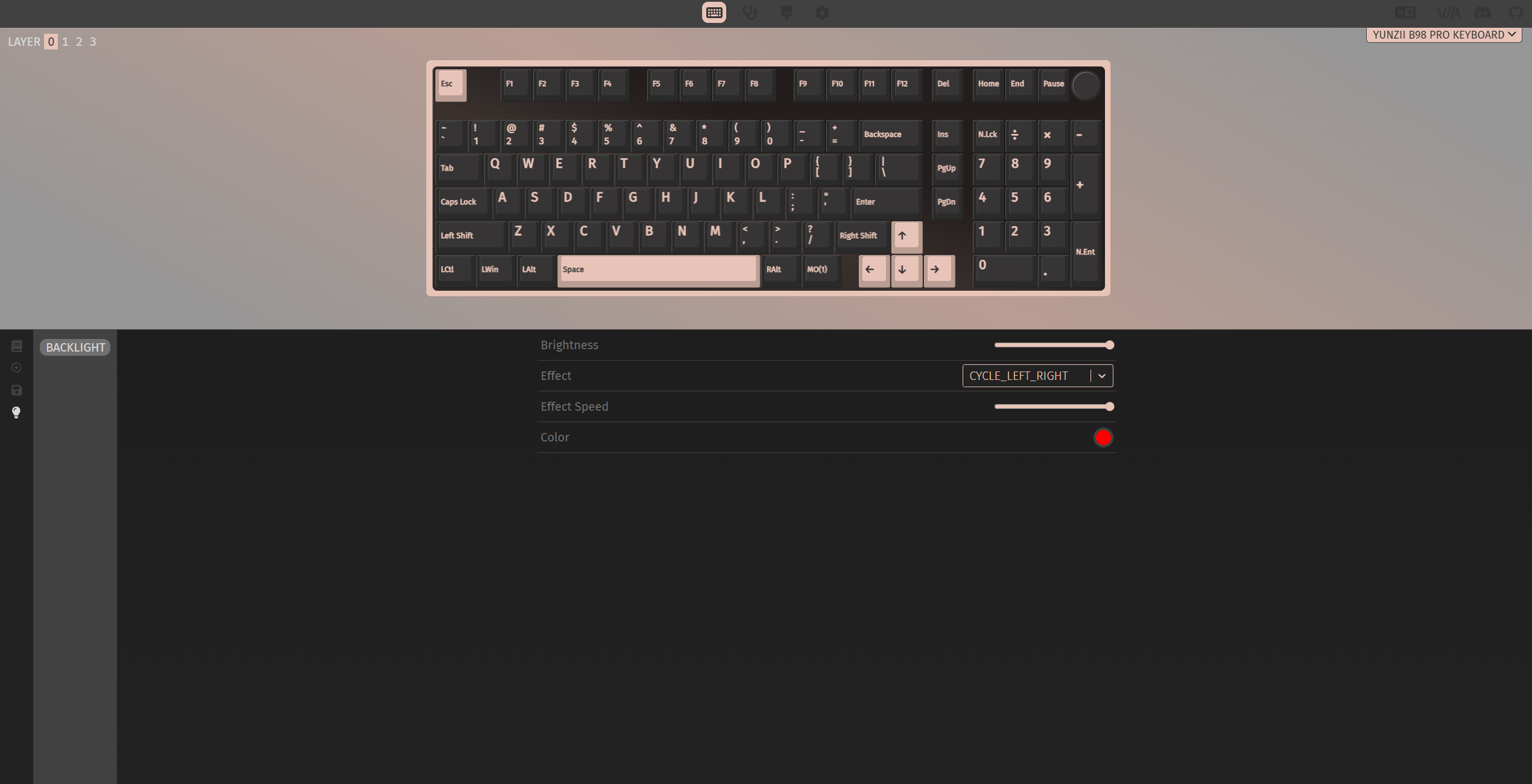 И напоследок — это VIA-профиль. Файл конфигурации для этой клавиатуры можно скачать с официального сайта. В целом всё стандартно и ничего необычного: доступно переназначение клавиш, создание второго слоя, настройка подсветки и макросов.
