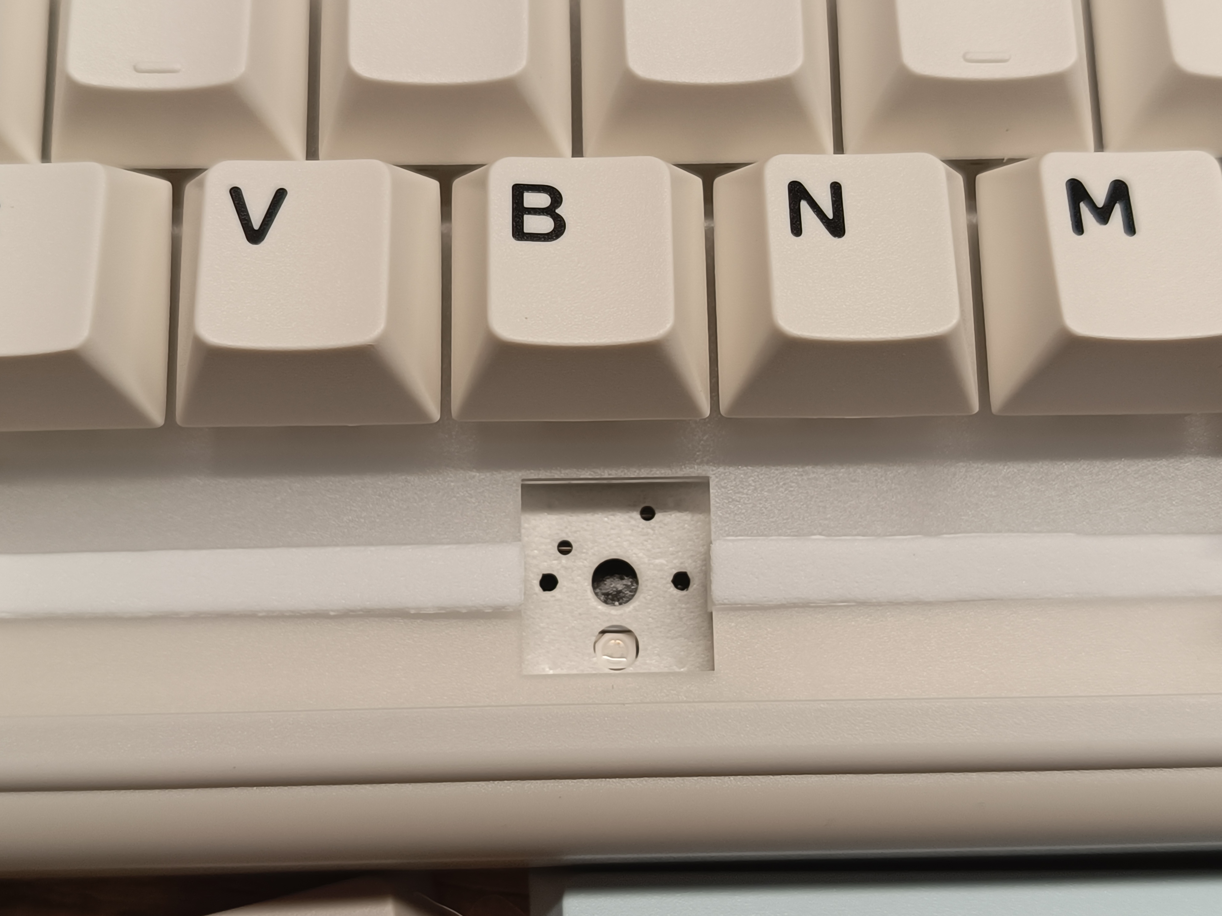 Энкодер звучит совершенно иначе, чем я привык слышать на других клавиатурах. Обычно он тихий и почти незаметный, а здесь, наоборот, при нажатии раздаётся громкий и отчётливый щелчок, а при вращении издается звук, напоминающий звук трещётки с автомобильного инструмента.