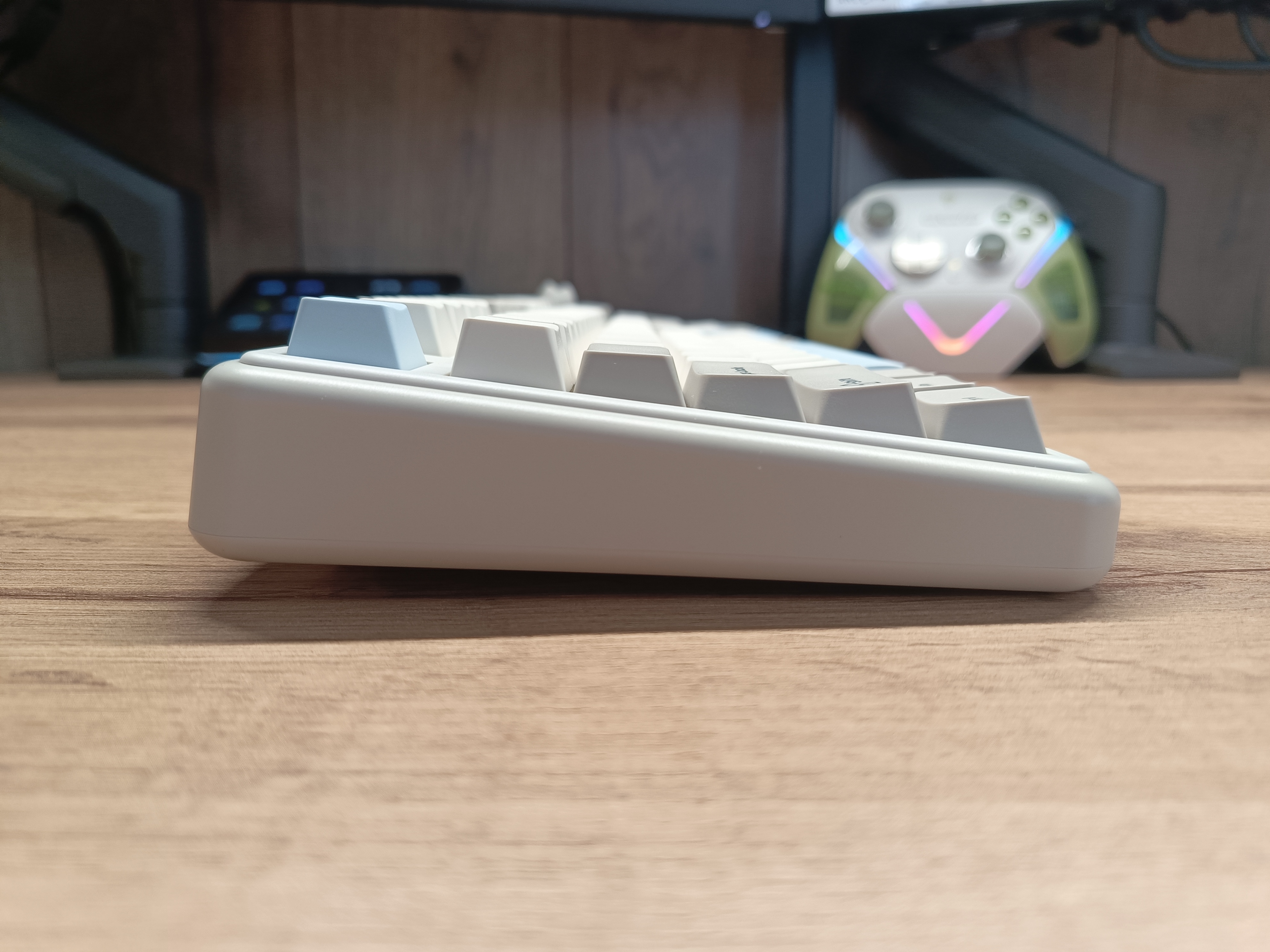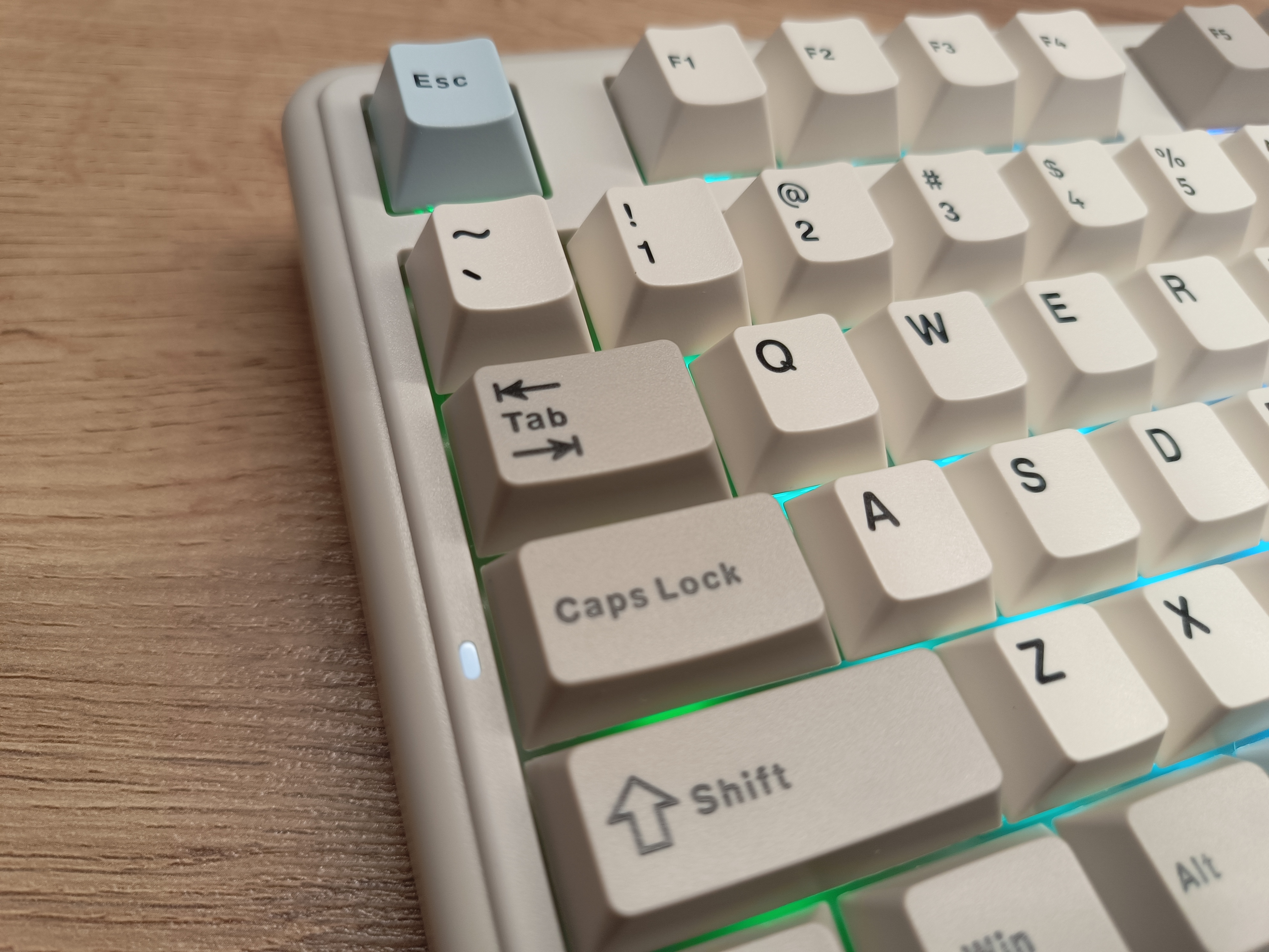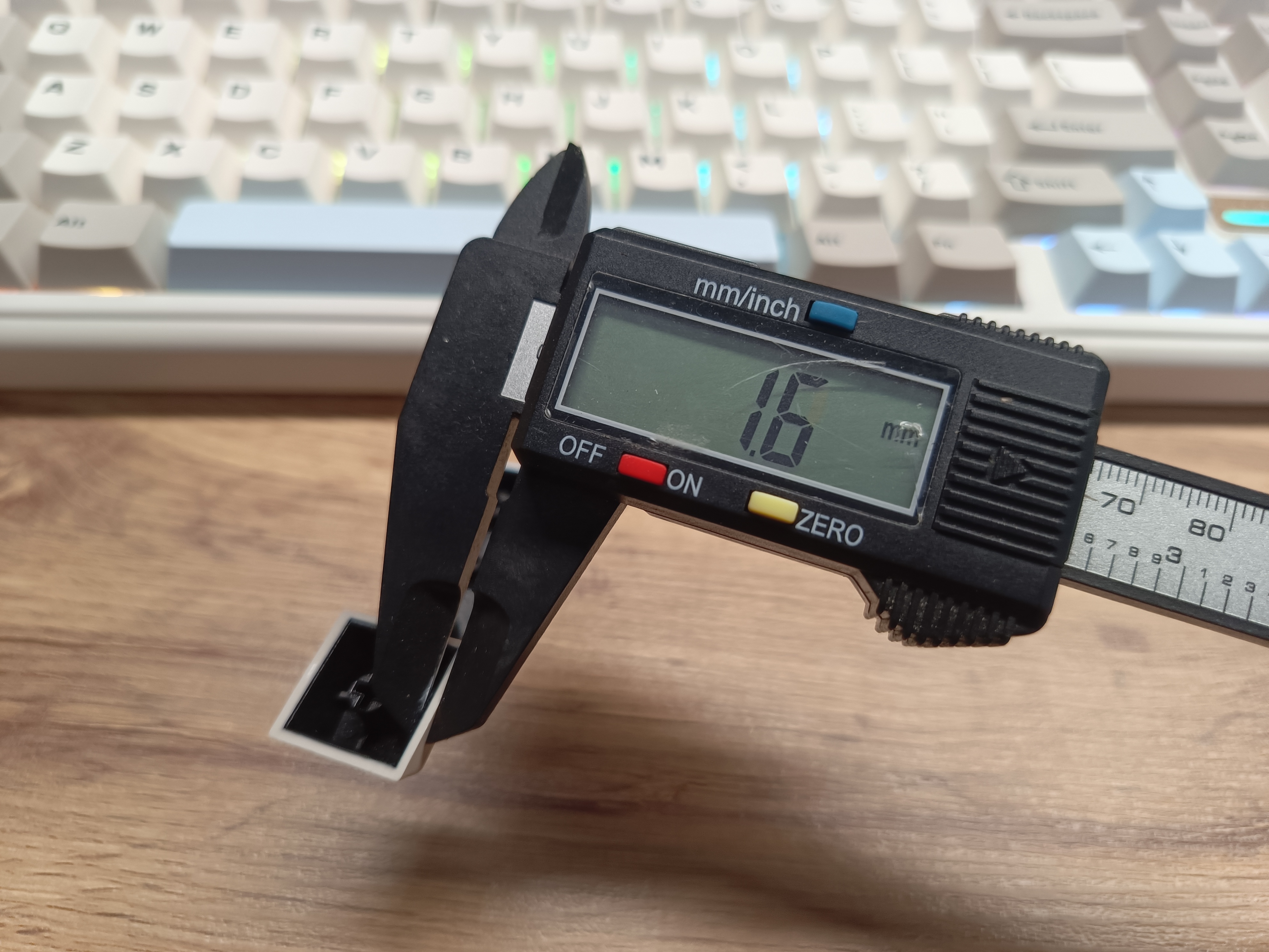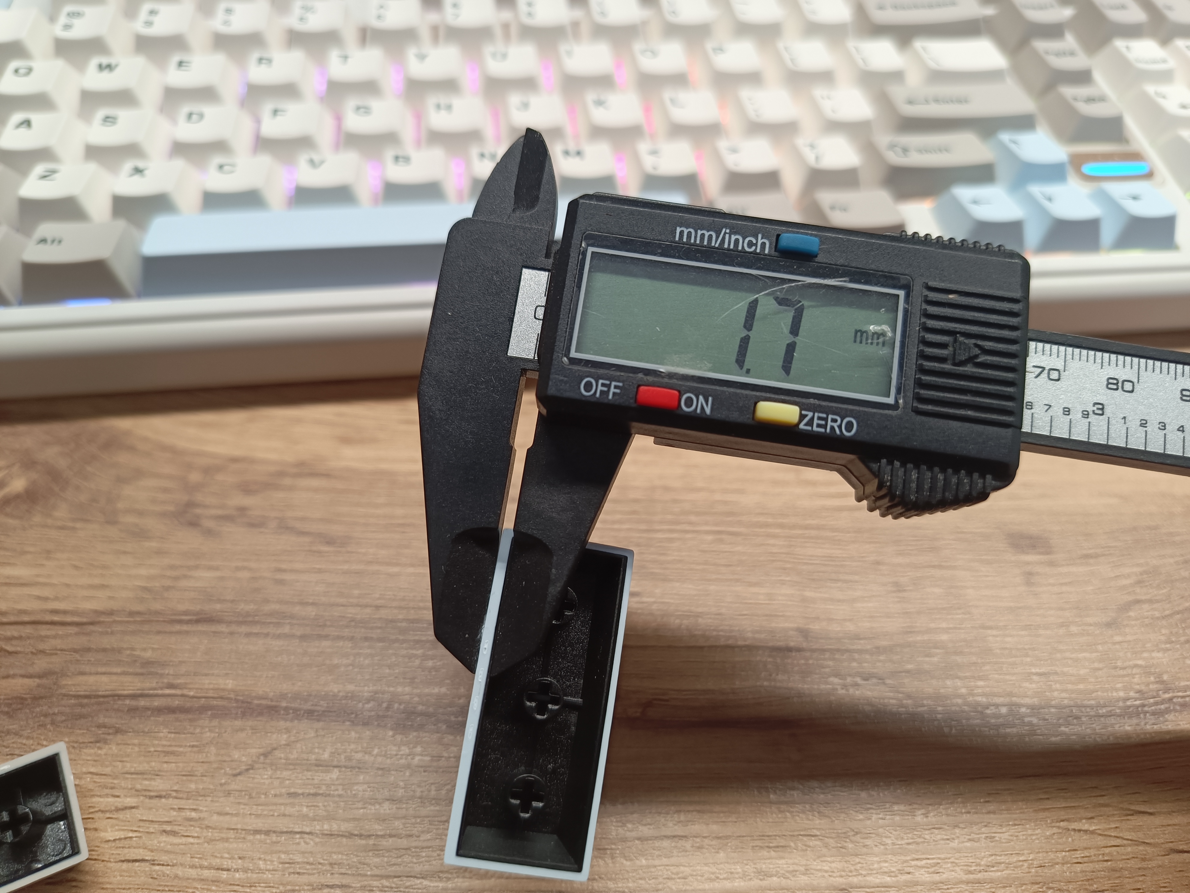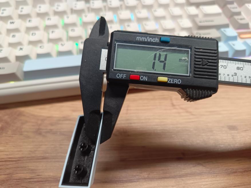 Кейкапы изготовлены по технологии двойного литья. Их толщина варьируется в зависимости от клавиши и стороны — от 1,4 мм до 1,7 мм, что, скорее всего, является особенностью производственного процесса.