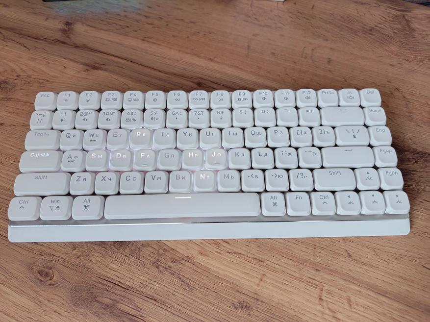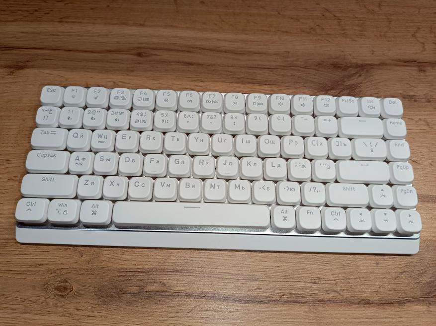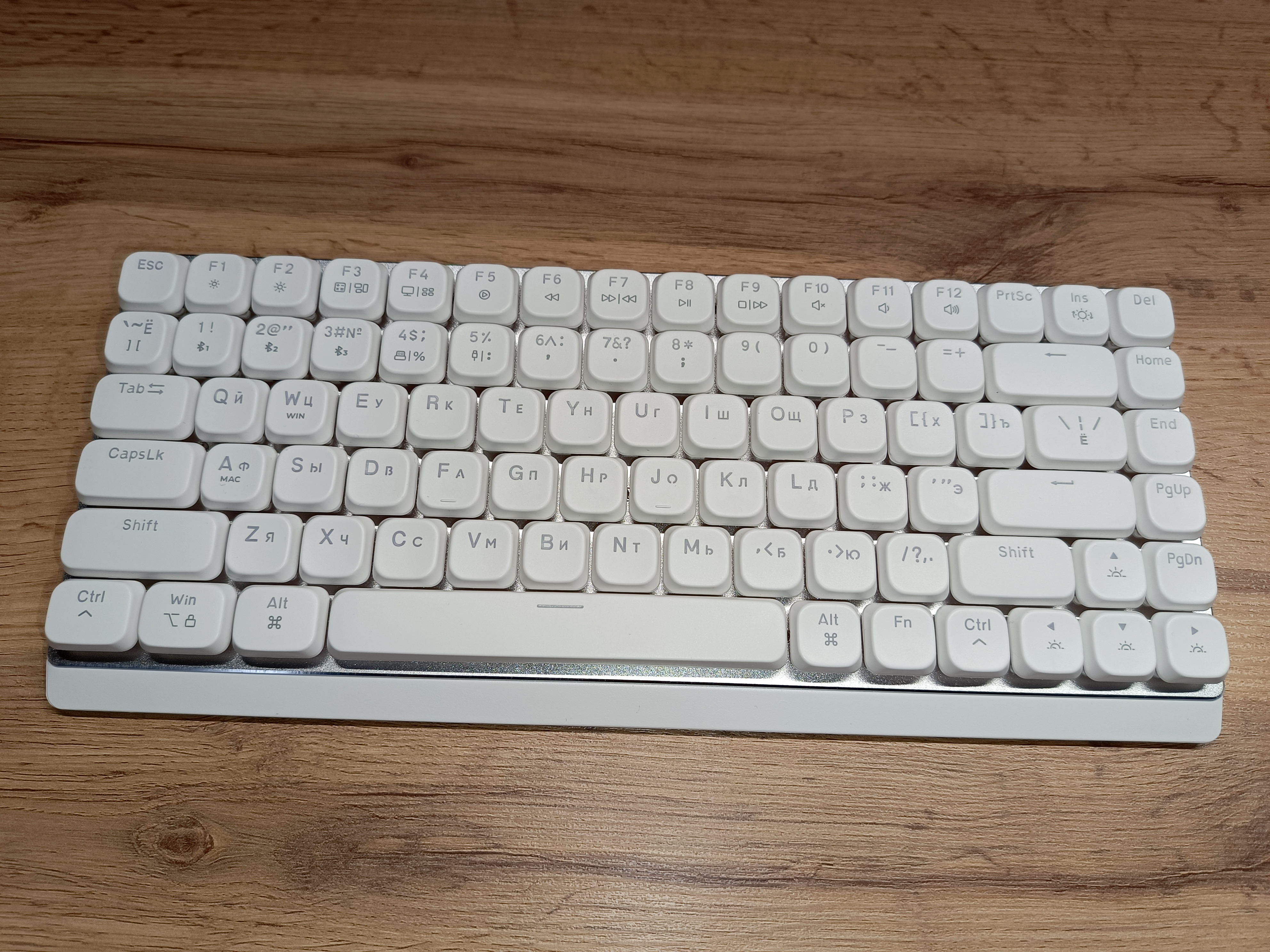Эта клавиатура уже выпускалась на рынок, но теперь вышла вторая ревизия. Во втором варианте добавили смазку свитчей, кейкапы стали качественнее, а время перехода в спящий режим увеличилось. Самое важное — подсветка теперь не желтит, как в первой версии.
