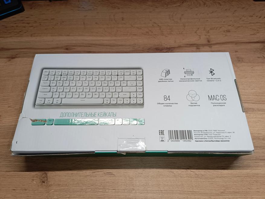 Клавиатура оснащена общим тумблером для включения и выключения, а режим подключения выбирается комбинацией клавиш FN на клавиатуре. В комплекте также есть подробная инструкция на русском языке.