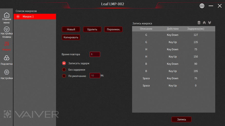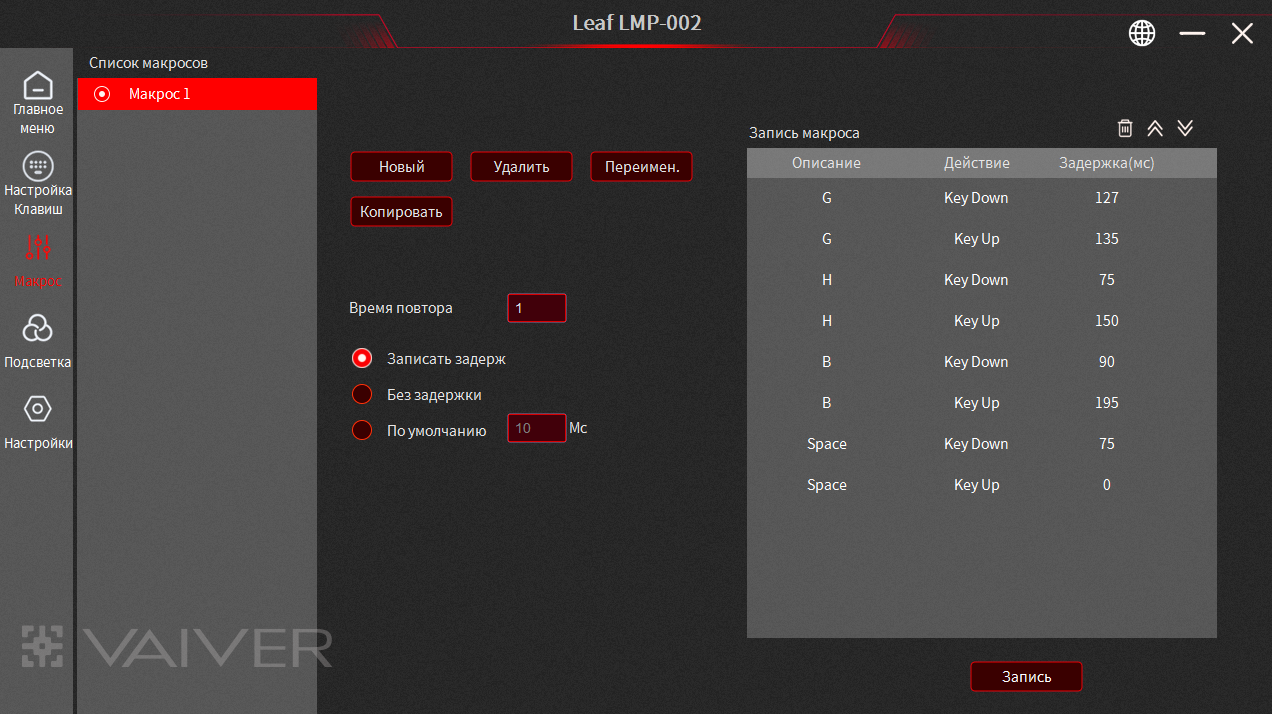 Для клавиатуры предусмотрено фирменное ПО. Через него можно назначать макросы, переназначать клавиши и управлять подсветкой. Интерфейс простой, понятный и, что важно, полностью на русском языке. Все настройки можно сохранять в разные профили, что позволит адаптировать её под разные варианты использования. Ничего лишнего, но все базовые функции на месте. Скачивается с официального сайта, здесь же производитель выкладывает новые версии прошивки.
