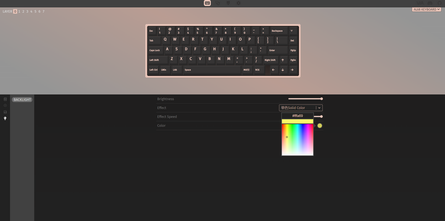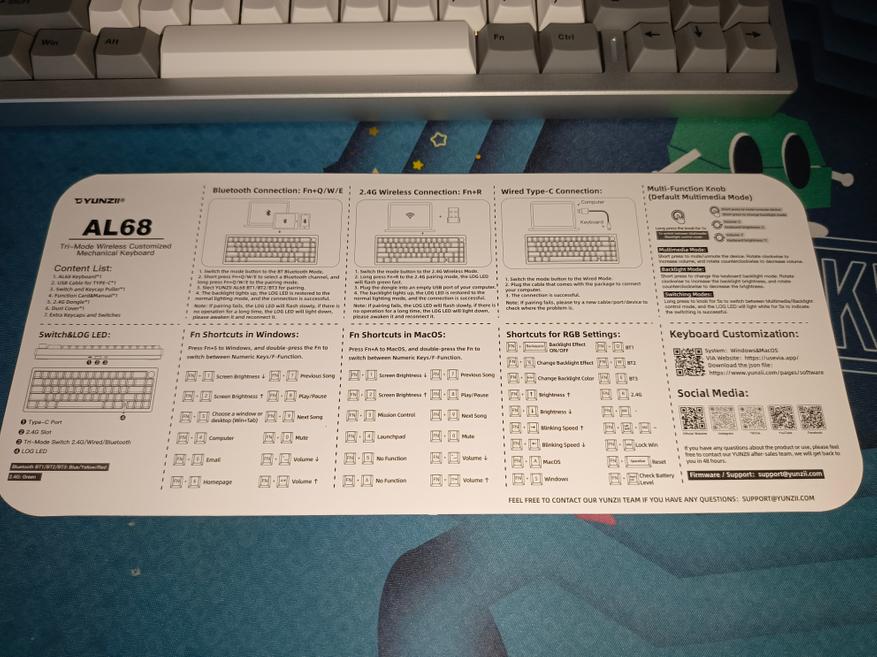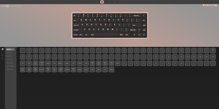 Для того чтобы настроить клавиатуру через VIA, нужно посетить официальный сайт YUNZII AL68, там скачать файл с настройками под конкретную клавиатуру. Дальше этот файл загружаем на сайте VIA, и только после этого вы получаете доступ к своей клавиатуре. Смог настроить только через Яндекс Браузер, в Google и Edge почему-то не хотела работать. Ещё можно скачать дистрибутив VIA, но через него клавиатура также не захотела работать. Хотя другая модель клавиатуры этого же производителя определяется без проблем.