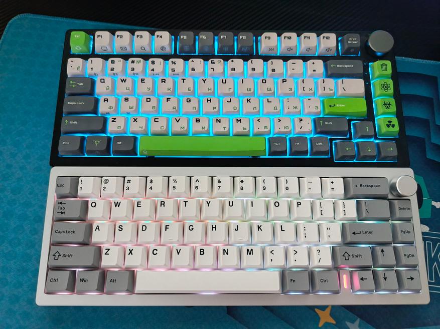 | Клавишные колпачки: | Двойные колпачки для клавиш из PBT-профиля вишни |