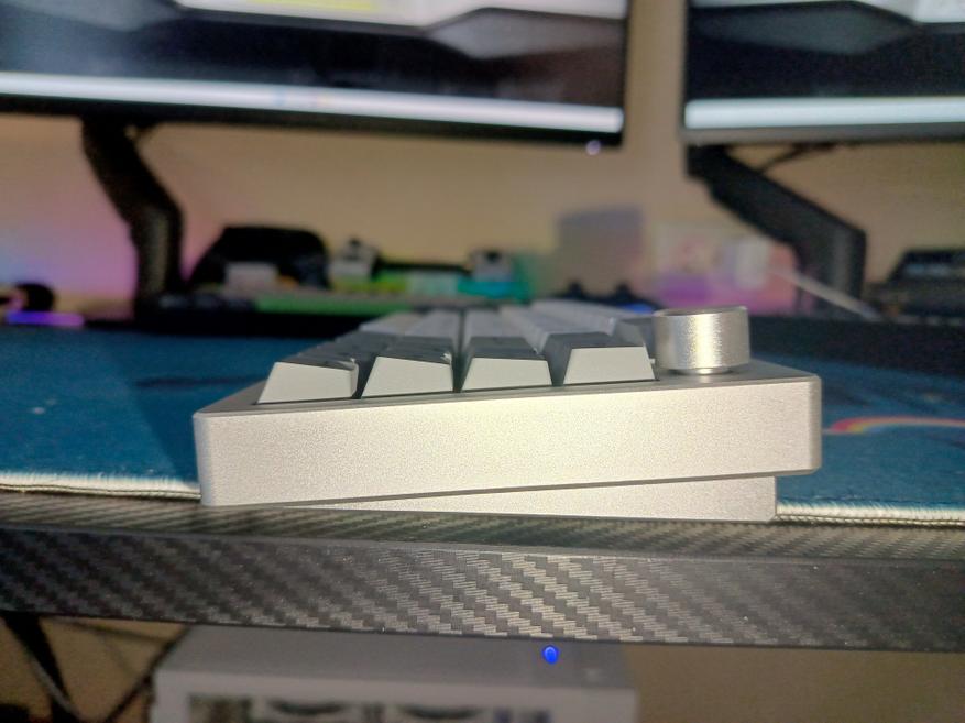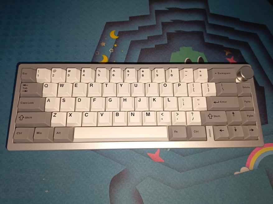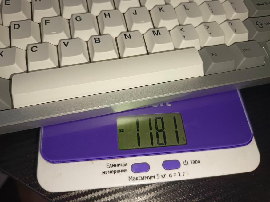В целом ничего необычного, за исключением алюминиевого корпуса. Из-за такого корпуса и гаскет-структуры клавиатура получилась тяжелой. Вес составляет почти 1,2 кг. Для примера, клавиатура ZONE 51 CITRIN весит на 200 грамм меньше, хотя она больше по размеру и оснащена на 17 клавиш больше.
