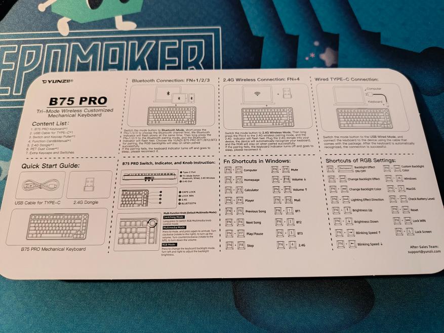 Клавиатура поставляется в фирменной упаковке компании Yunzii. В комплекте вы найдете: