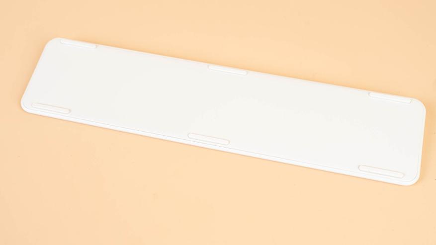 Раз уж зашла речь об удобстве работы, стоит отметить: в комплекте предусмотрена пластиковая подставка под запястья, дизайн которой выдержан в едином стиле с клавиатурой — это заметно по материалу корпуса, цвету и округлым краям. На первый взгляд наличие в комплекте подставки под запястье кажется незначительным, однако она существенно снижает утомляемость при длительной работе за компьютером. Подставка помогает поддерживать правильное положение кистей, предотвращая развитие туннельного синдрома и других заболеваний, связанных с перенапряжением запястий.