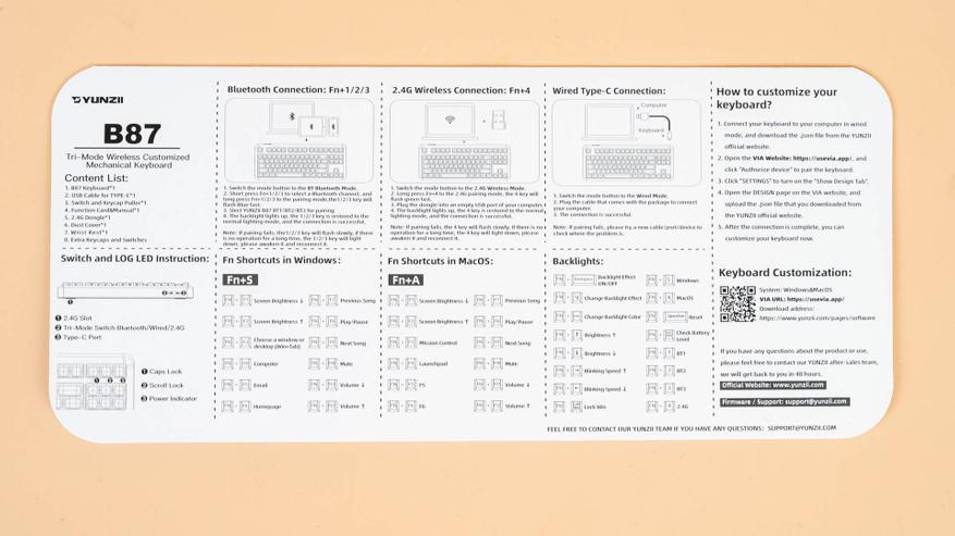 Ввиду блокировки веб-сайта VIA на территории Российской Федерации, доступ к фирменному программному обеспечению для YUNZII B87 невозможен. Однако, функциональностью мультимедиа и управление подсветкой клавиатуры можно воспользоваться с помощью встроенных комбинаций клавиш.