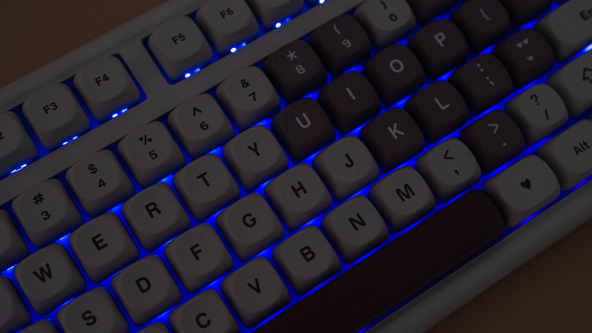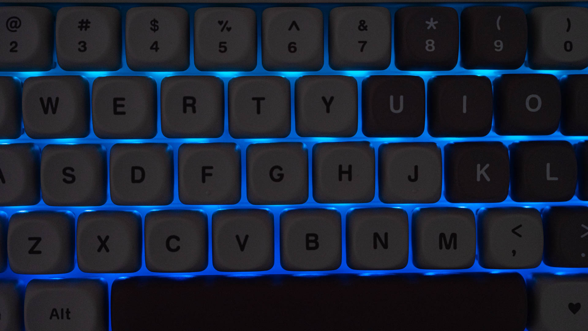 Клавиатура B87 обладает приятной подсветкой, которая благодаря поликарбонатному плейту рассеивается равномерно. Важно отметить, что символы на клавишах не подсвечиваются, что может создавать неудобства при работе в условиях низкой освещенности или при отсутствии навыка слепой печати.