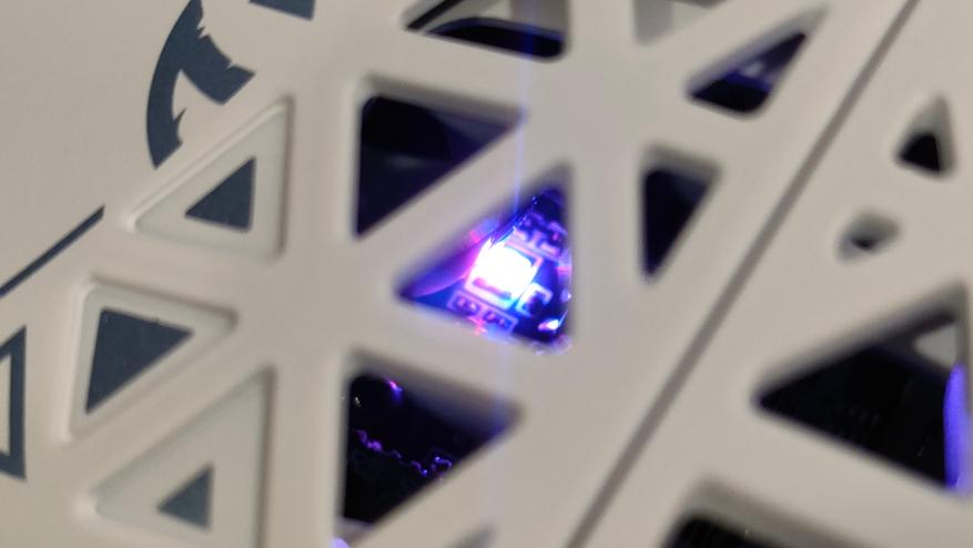 Подсветки здесь никакой нет, кроме маленькой точки внутри, а ещё, её практически не оказалось на приёмопередатчике, на который я делал ставку. Внутри скромно и ненавязчиво подсвечивается логотип бренда.