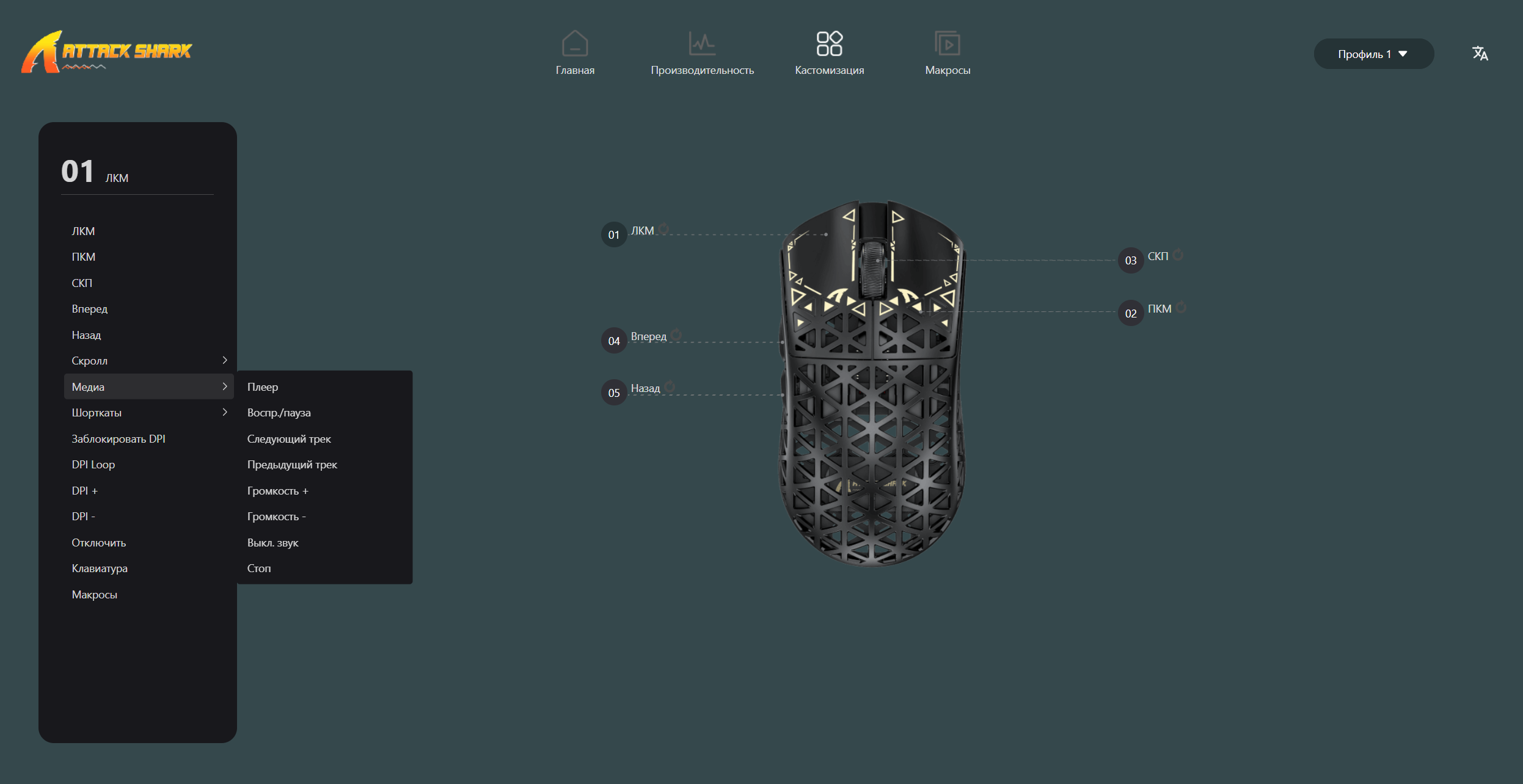 Все настройки мыши можно проводить в фирменном ПО, которое можно установить на компьютер, а можно просто воспользоваться браузером и настроить там.
