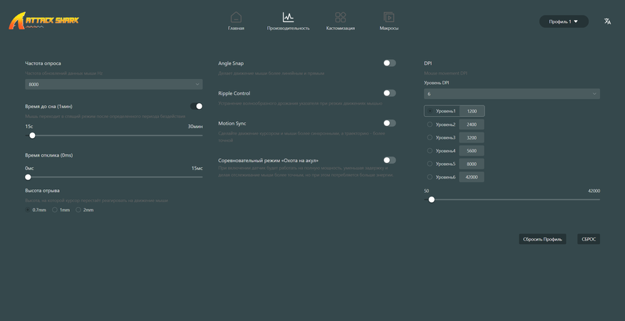 Таким типом ПО я и воспользовался, там же можно обновить прошивку приёма-передатчика и самой мышки, есть классический набор для настройки: переназначение, макросы, базовые параметры.