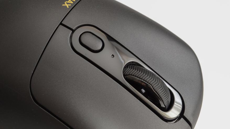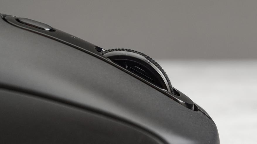 Колесико прокрутки обеспечивает хорошее сцепление благодаря силиконовой «шине» с протектором. Отсечки ощущаются четко, но это вопрос привычки. При медленном скролле оно бесшумно, а при быстром — слегка «трещит» (не самое поэтичное слово, но точное).