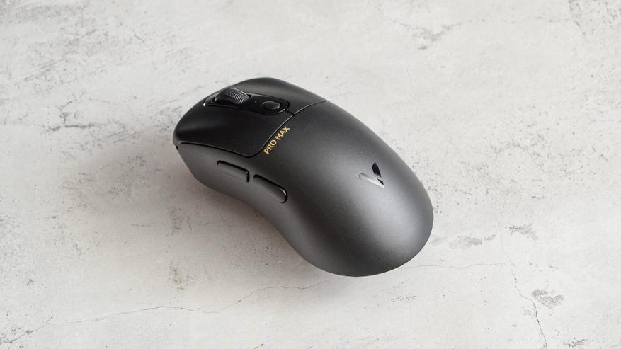 Единственное, что привлекает внимание, — это глянцевая вставка в форме латинской буквы «V», указывающая на игровую направленность бренда, и аккуратная надпись «PRO MAX» золотистым шрифтом.