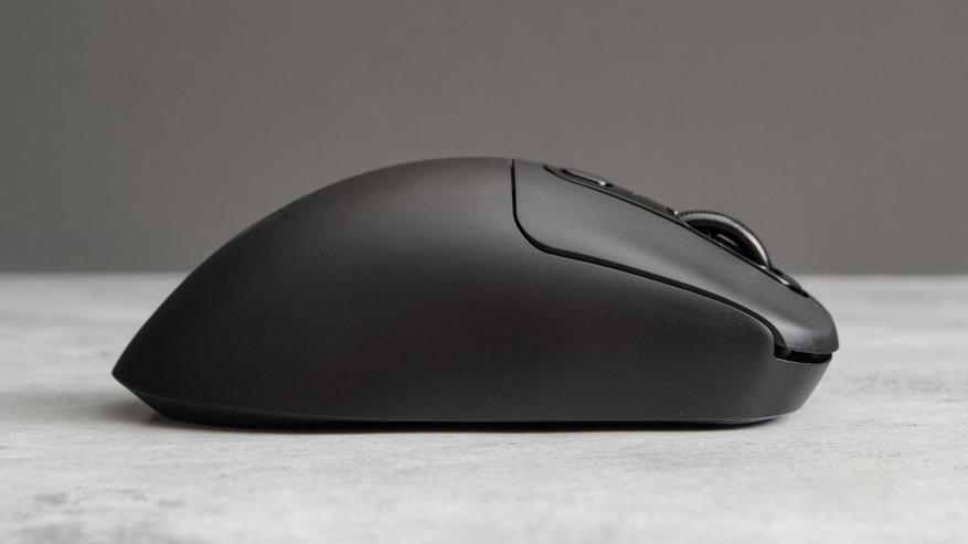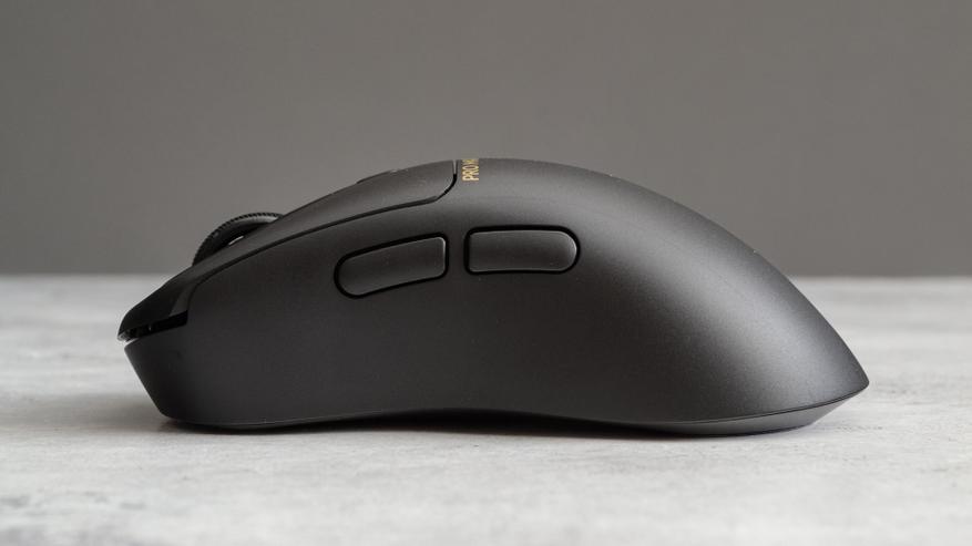 Корпус имеет асимметричную форму, предназначенную для правшей. Это подтверждают и кнопки навигации на левой стороне. Размеры средние (123 x 66 x 42 мм), что делает мышь подходящей для пользователей со средней и крупной ладонями.