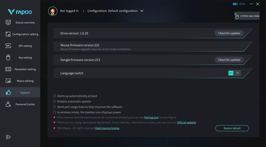 Для настройки Rapoo VT3PRO MAX есть официальное ПО.