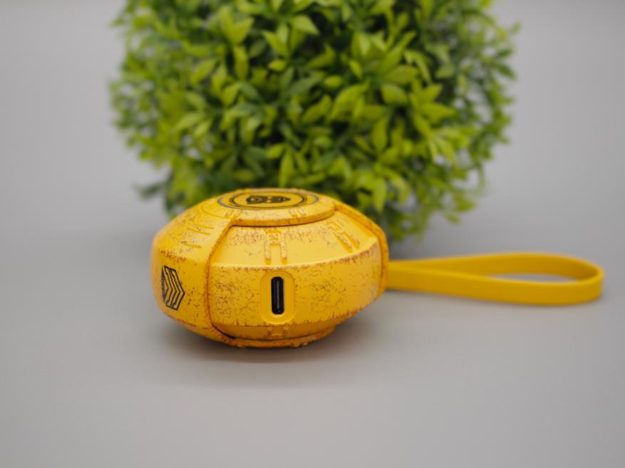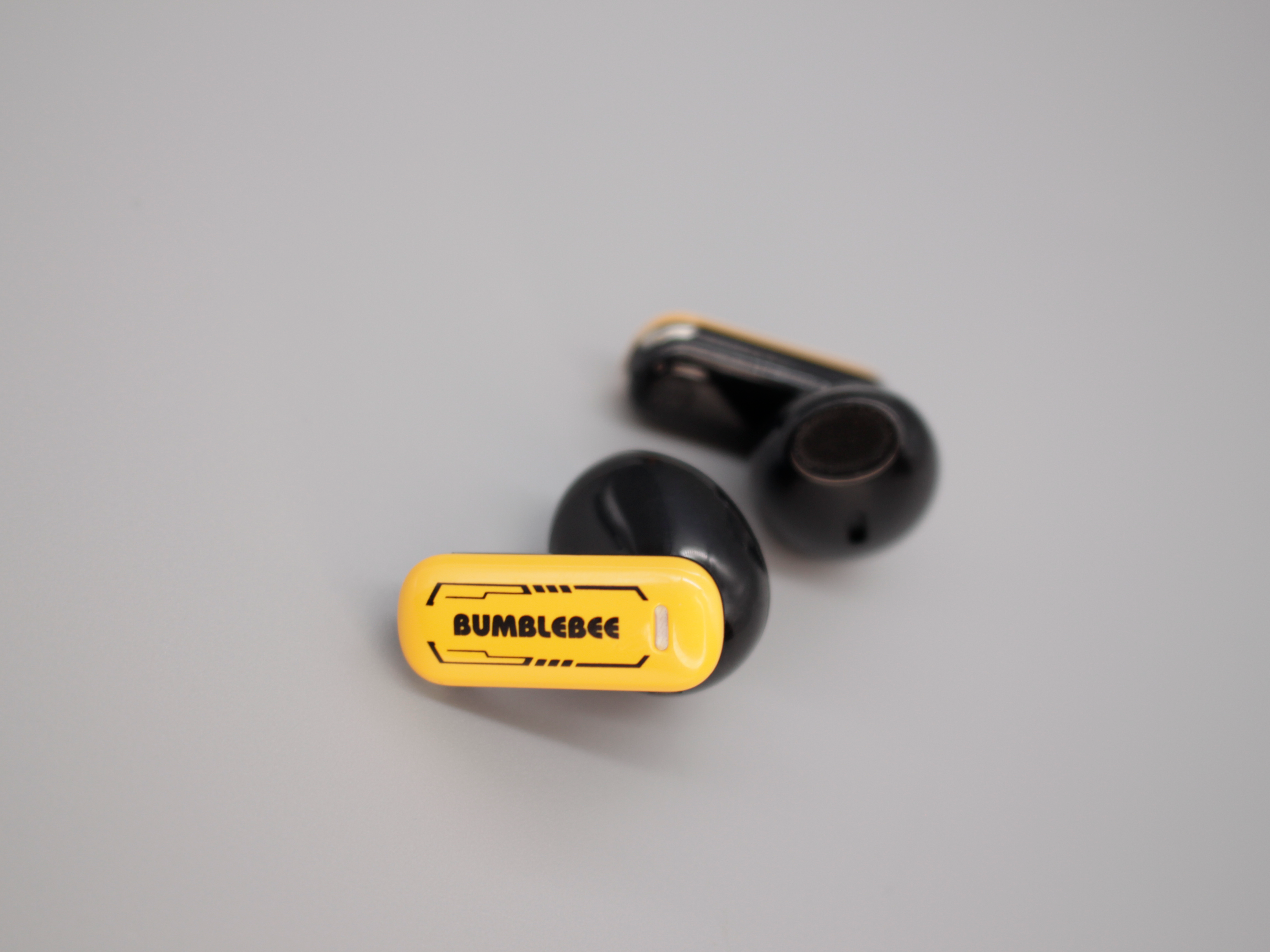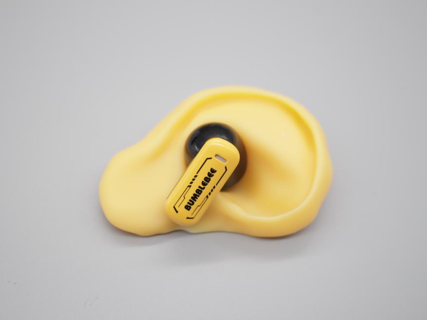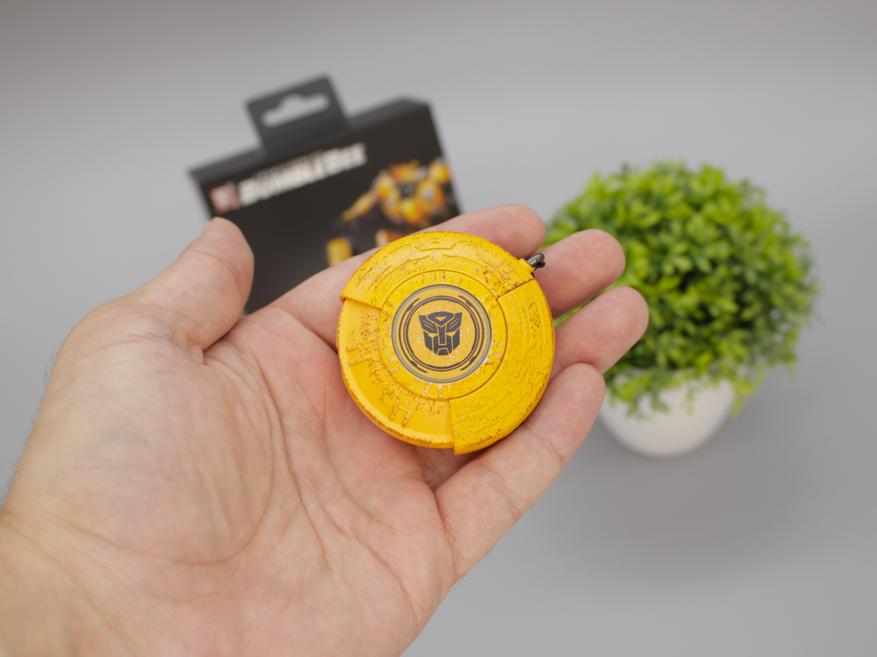 Сами наушники очень компактные. Корпус из глянцевого пластика с накладкой желтого цвета и надписью Bumblebee.
