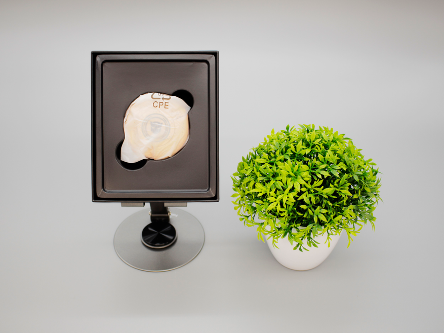 Внешний вид крайне привлекательный и уникальный. Корпус кейса представляет собой компактный объемный диск из сплава некоего металла. Легкий, но явно тяжелее пластика. В центральной части находится логотип «Автоботов». Покраска выполнена крайне необычно: создан эффект старения за счет потертостей и рандомных участков окрашивания с имитацией окисления металла. Таким образом, производитель весьма успешно создал имитацию древнего медальона.