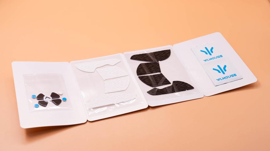 Запасные тефлоновые ножки, грипсы, а также ленты для улучшения хвата находятся под чехлом-кейсом.