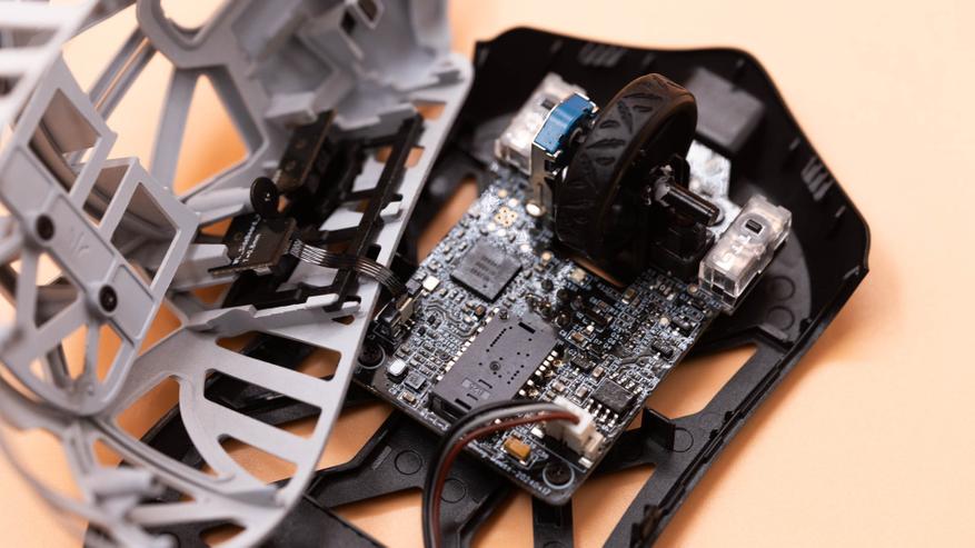 Сердцем устройства является связка сенсора PixArt 3950 и микроконтроллера Nordic nRF52840, что обеспечивает точное отслеживание движений и минимальную задержку ввода.