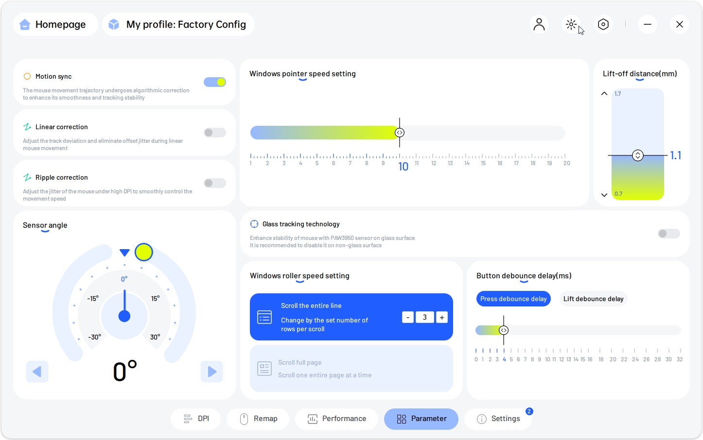 К серьезным настройкам относятся выбор частоты опроса и регулировка высоты отрыва (LOD), предотвращающая дрожание курсора при поднятии мыши. Также предусмотрена коррекция угла (Angle Snapping) и алгоритмы анти-дрожания.