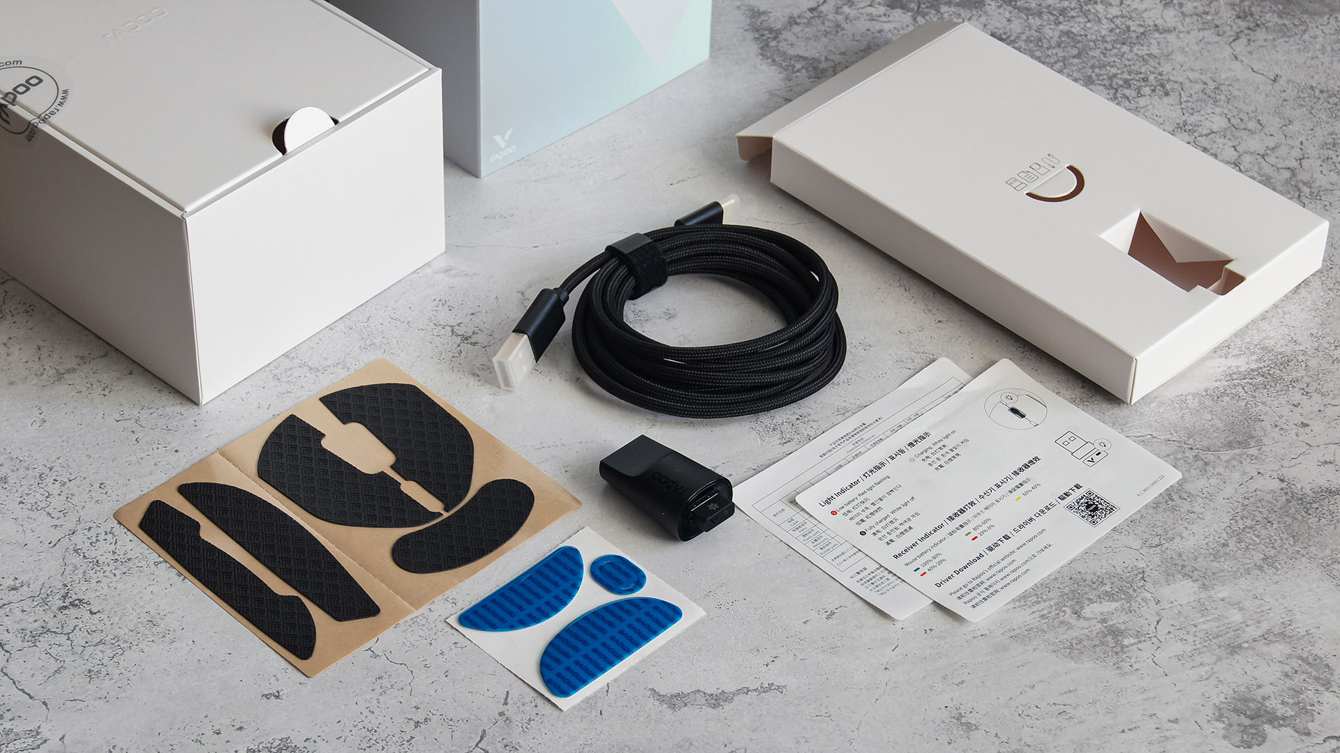 - Специальный адаптер-удлинитель для радиочастотного модуля (позволяет разместить приемник ближе к мыши для стабильности связи);