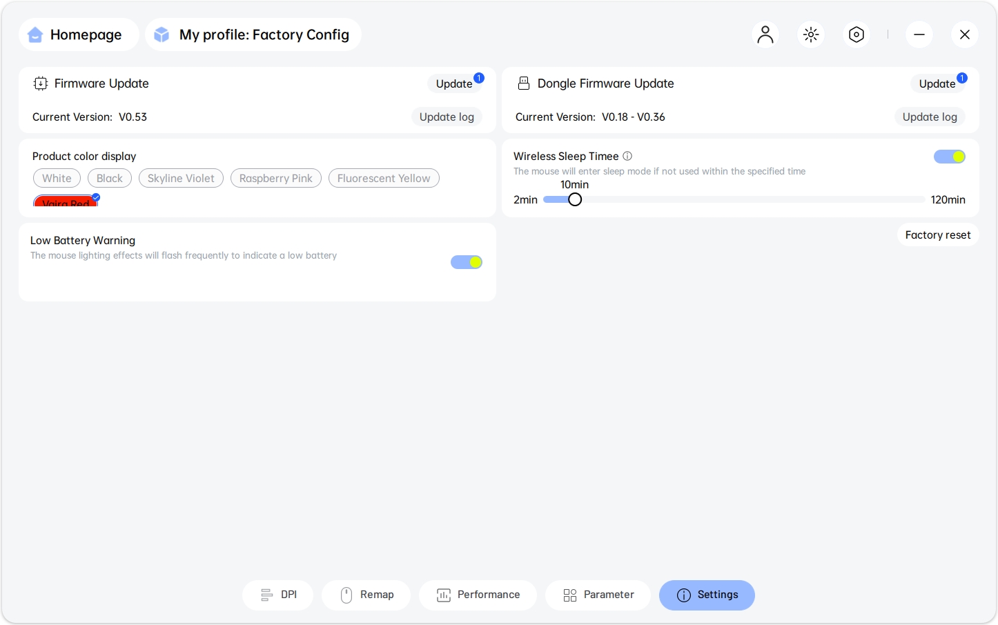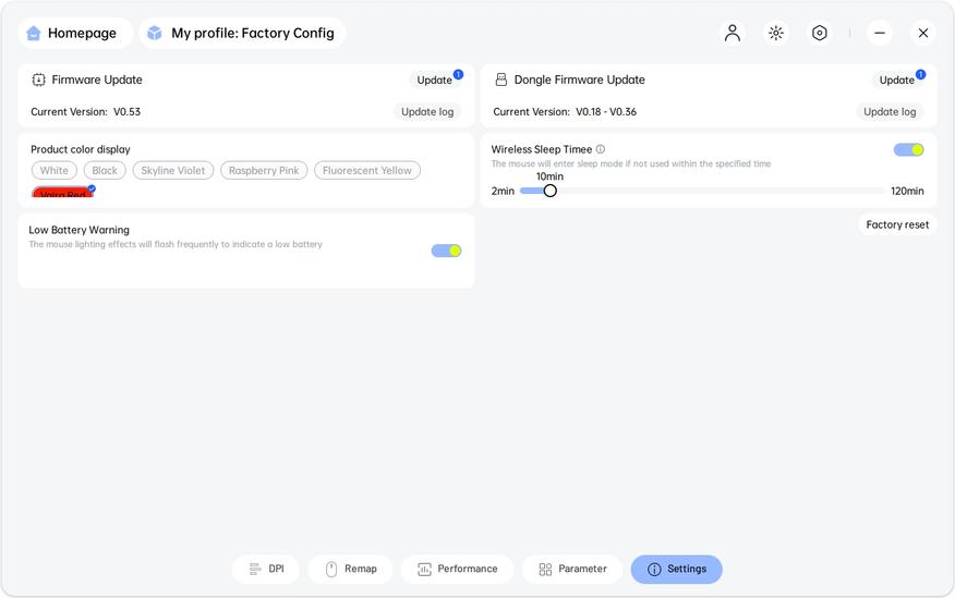Софт позволяет управлять таймером спящего режима и обновлять прошивки. Важный плюс — встроенная память: один раз настроив VT2 Max, вы сохраните профили внутри устройства и сможете использовать их на любом ПК без установки ПО.