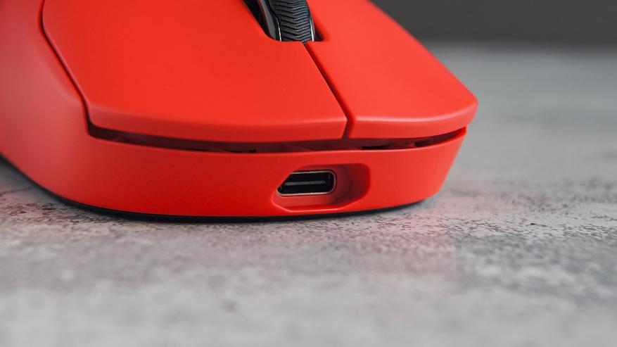 На переднем торце находится порт USB-C для подзарядки и проводной эксплуатации. Разъем вмонтирован по центру и слегка утоплен вглубь корпуса.