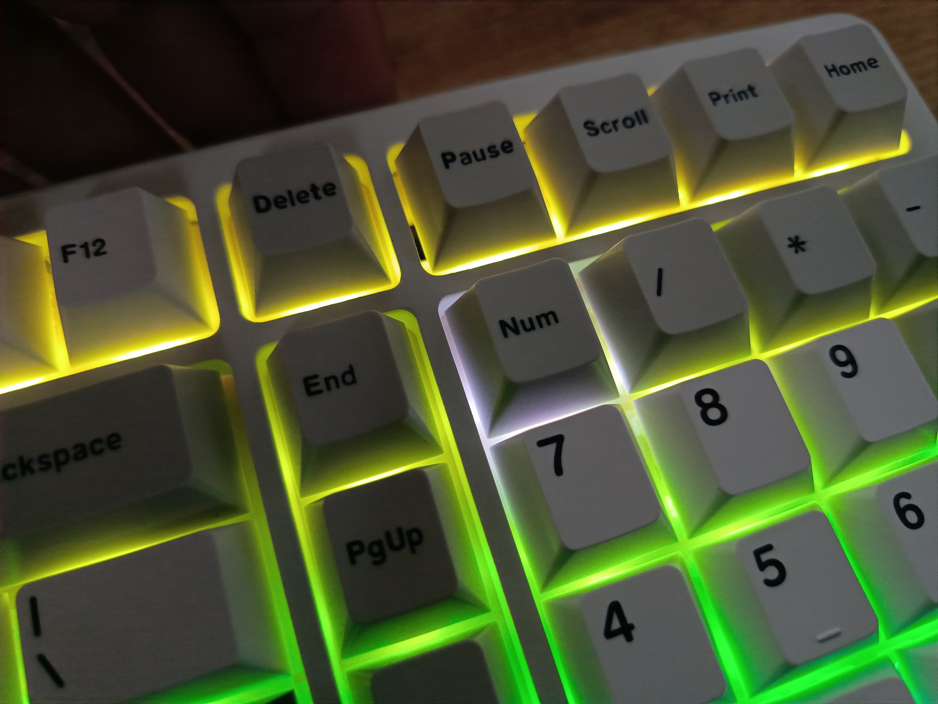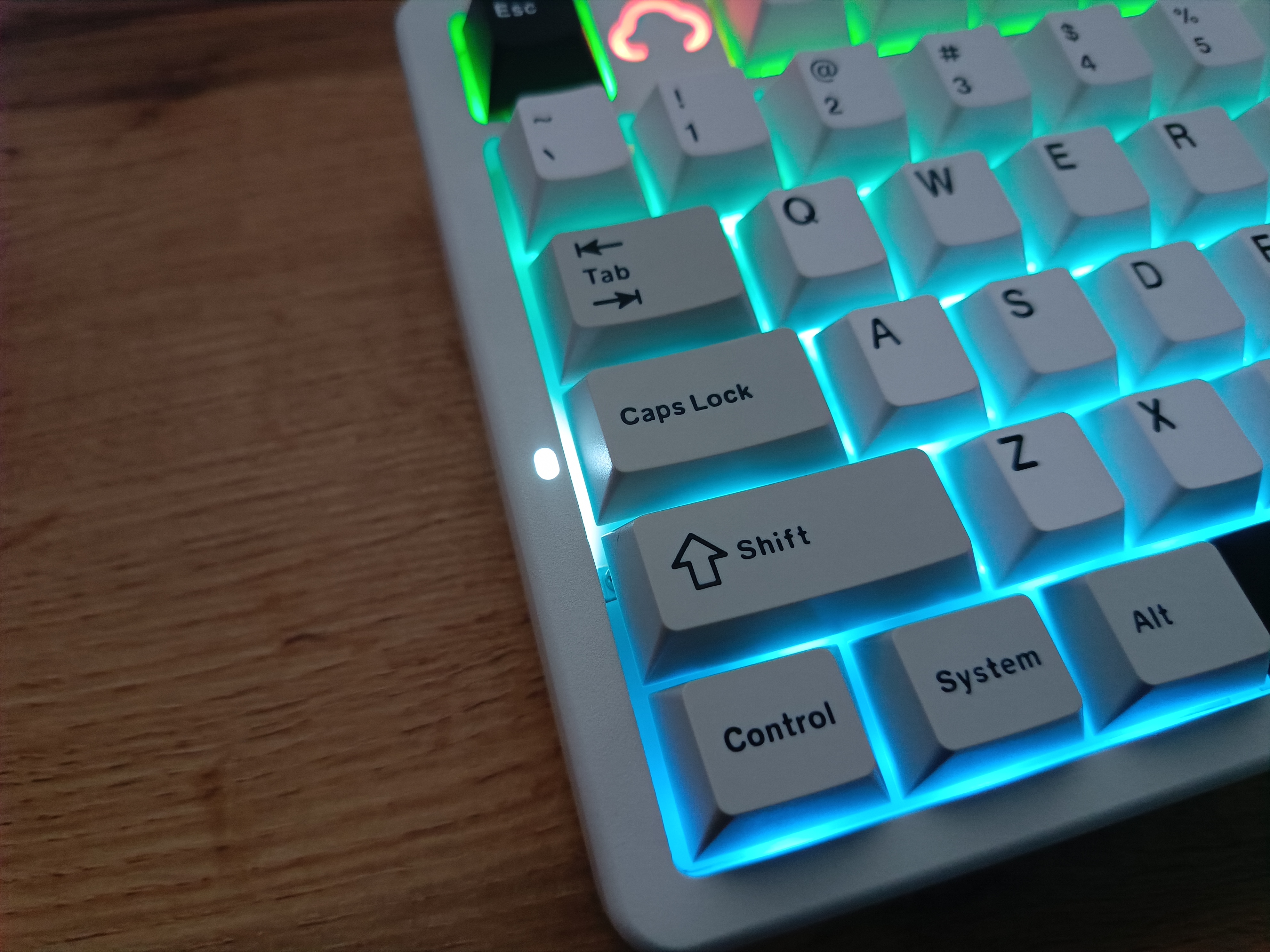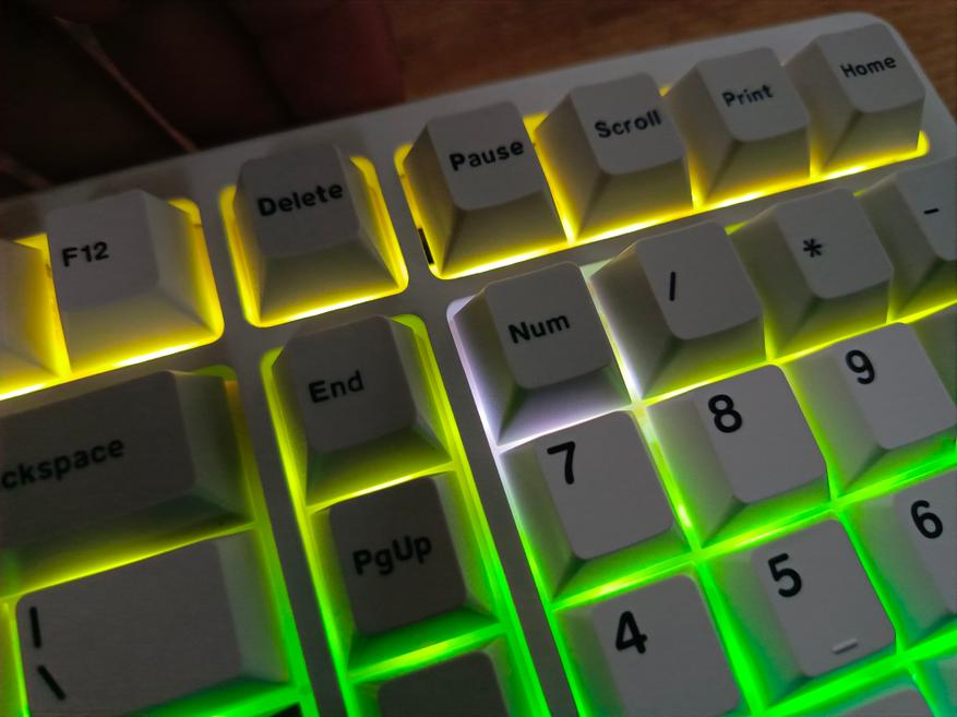 При нажатии клавиши Caps Lock загорается расположенный рядом светодиод. Он становится белым. Клавиши Num Lock и Caps Lock подсвечиваются белым цветом, даже если подсветка выключена.